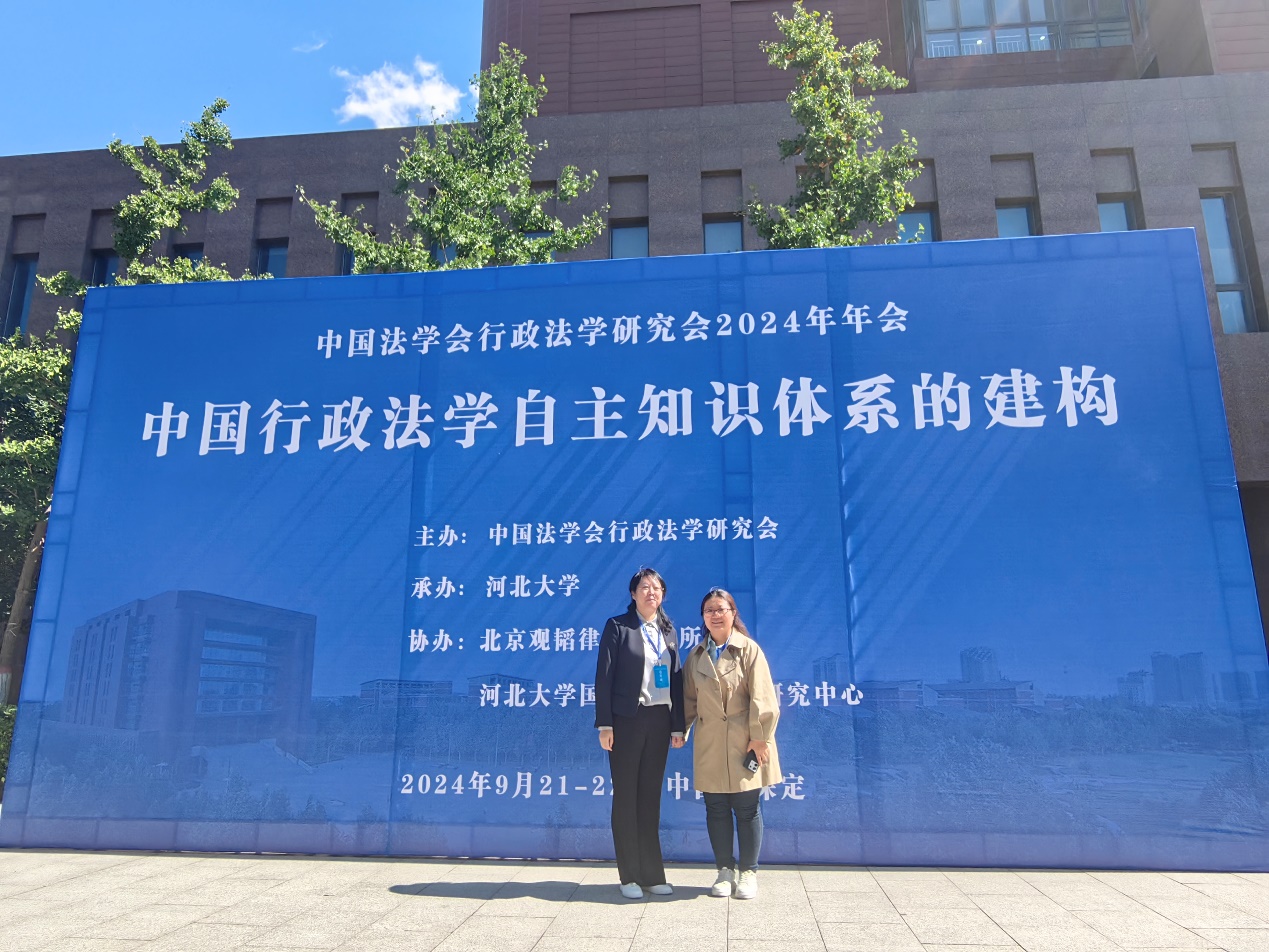 2024年9月21日,h视频 蒋冰晶教授、张继红副教授参加中国法学会行政法学研究会2024年年会,年会主题为“中国行政法学自主知识体系的建构”。本次会议由中国法学会主办,河北大学法学院承办。会议就“中国行政法学自主知识体系的建构”进行了研讨。蒋冰晶教授在会上作为分论坛与谈人发言。