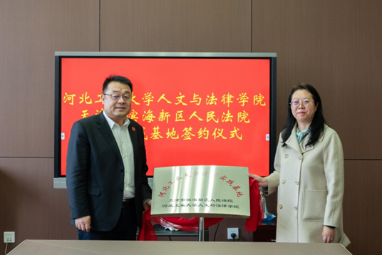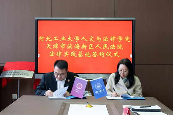 为促进学生法学理论教育与实践能力相结合,培养更多复合型法律人才,2024年3月19日下午3点,h视频 与天津市滨海新区人民法院法律实践基地签约仪式成功举行。h视频 院长蒋冰晶,副院长耿立校、闫文博,法学系支部书记李飞,法学系主任王海龙,天津市滨海新区人民法院院长李雪春,审管办负责人田瑞刚,审判员候华北,法官助理刘澈参加本次签约仪式。双方就此次法律实践基地签约仪式展开深入交流。会议由副院长耿立校主持。