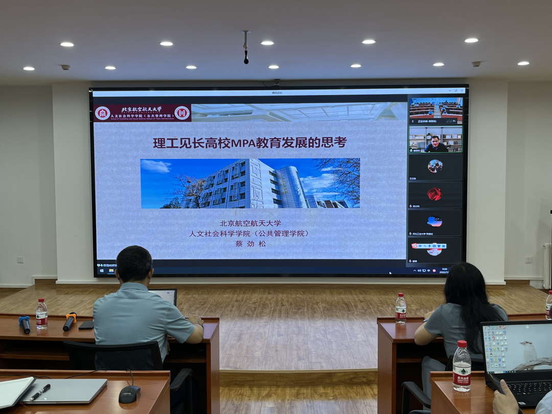 2022年7月8日上午,北京航空航天大学公共管理学院院长蔡劲松教授受邀做客h视频 文法大讲堂第四十一期,在线上为老师们带来了以“理工见长高校MPA教育发展的思考”为主题的讲座,本次讲座由h视频 副院长闫文博老师主持,h视频 院长李艳双、副院长马立民等h视频 全体老师参与了本次讲座。