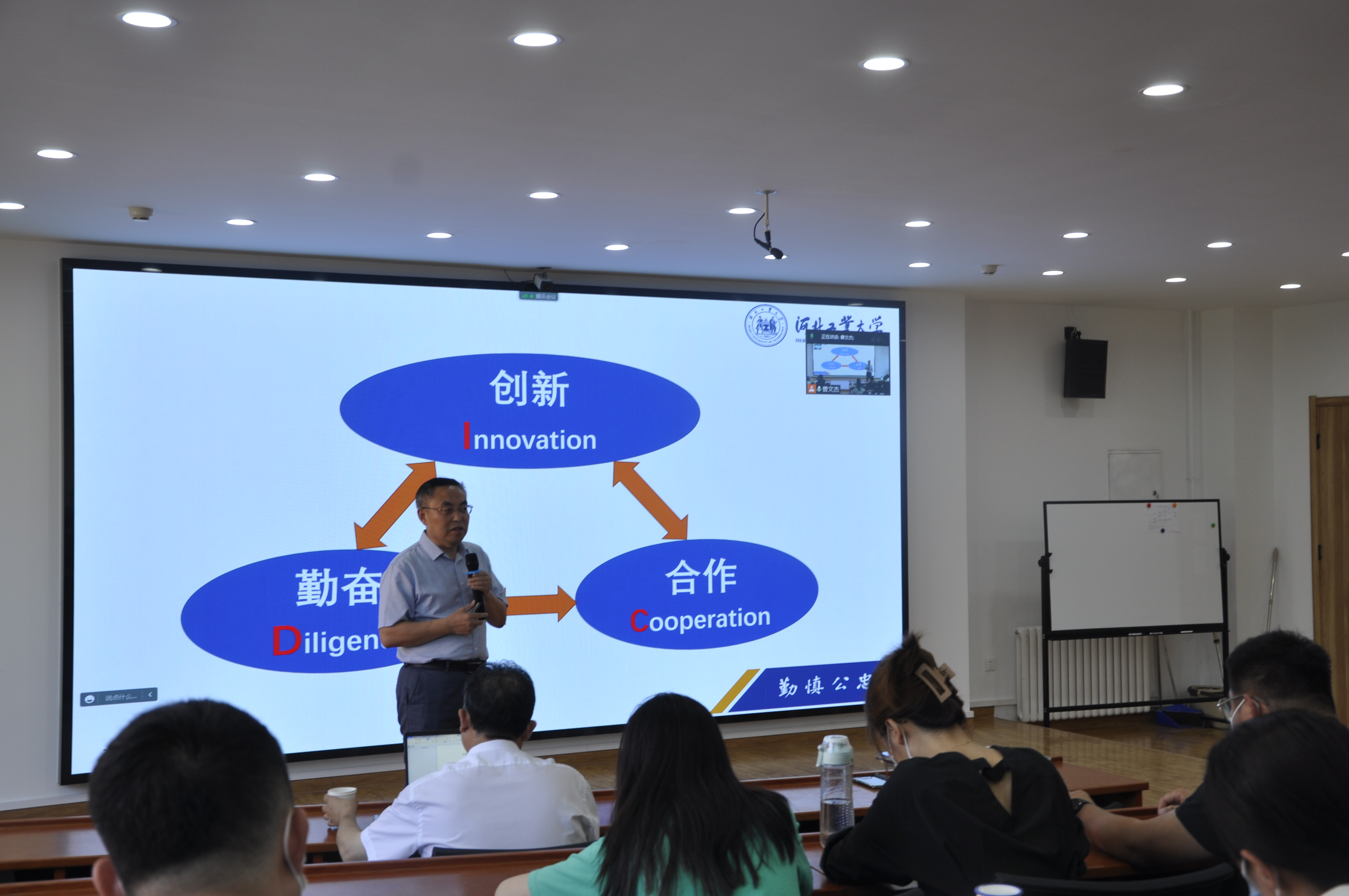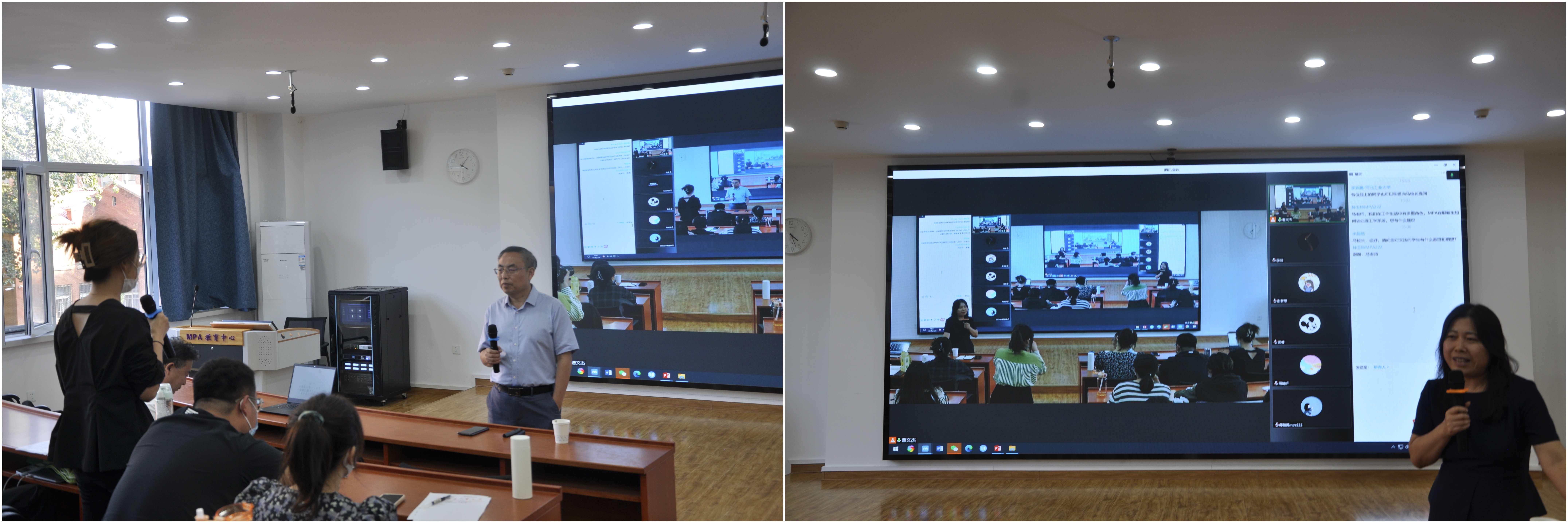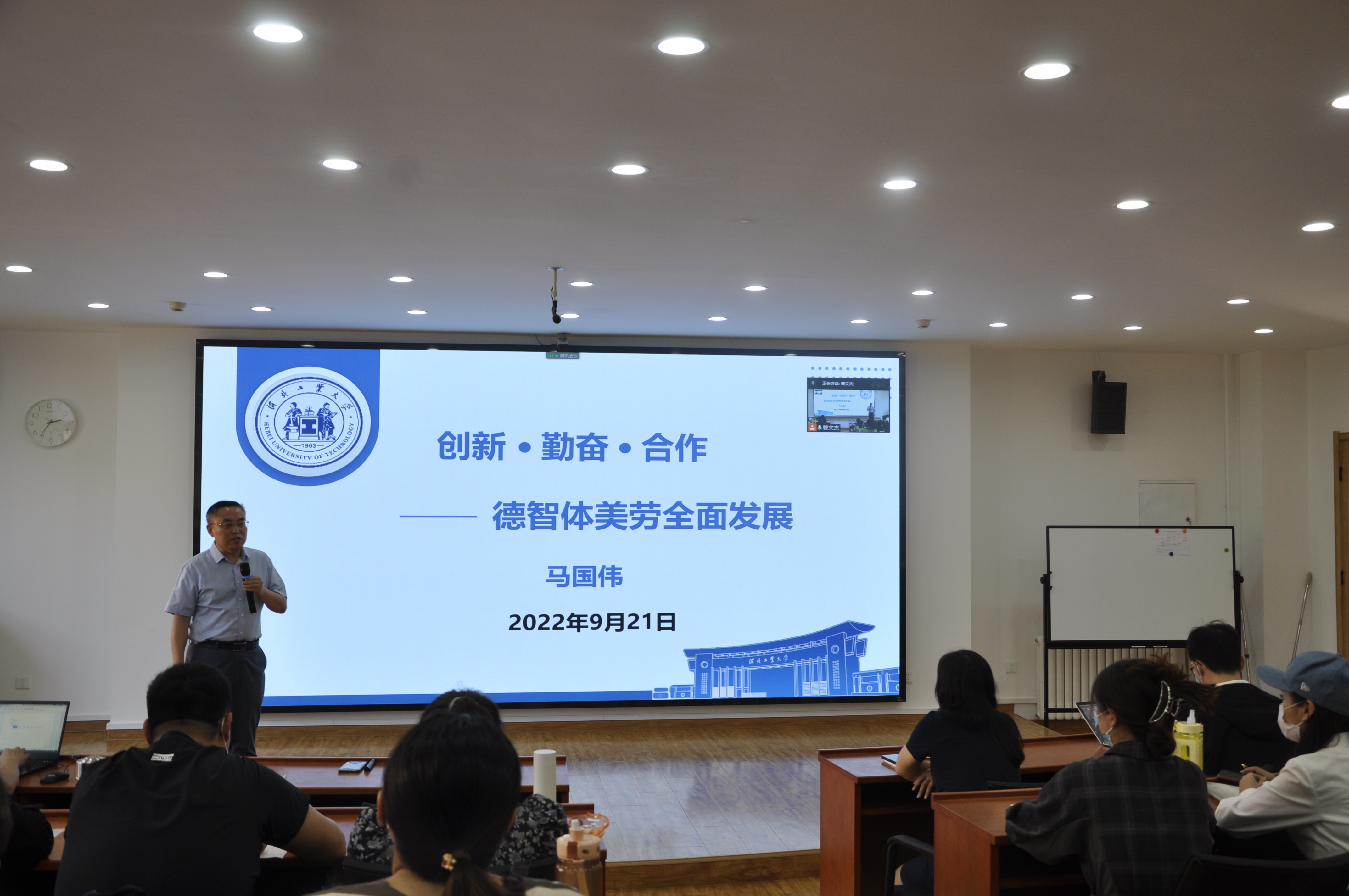 2022年9月21日下午,h视频 副校长马国伟教授受邀做客h视频 开学第一课,在h视频 东院MPA教育中心带来了以《创新•勤奋•合作—德智体美劳全面发展》为主题的讲座,本次讲座由h视频 副院长闫文博主持,h视频 院长李艳双、副院长马立民、部分老师及2022级全体MPA同学参加了本次讲座。