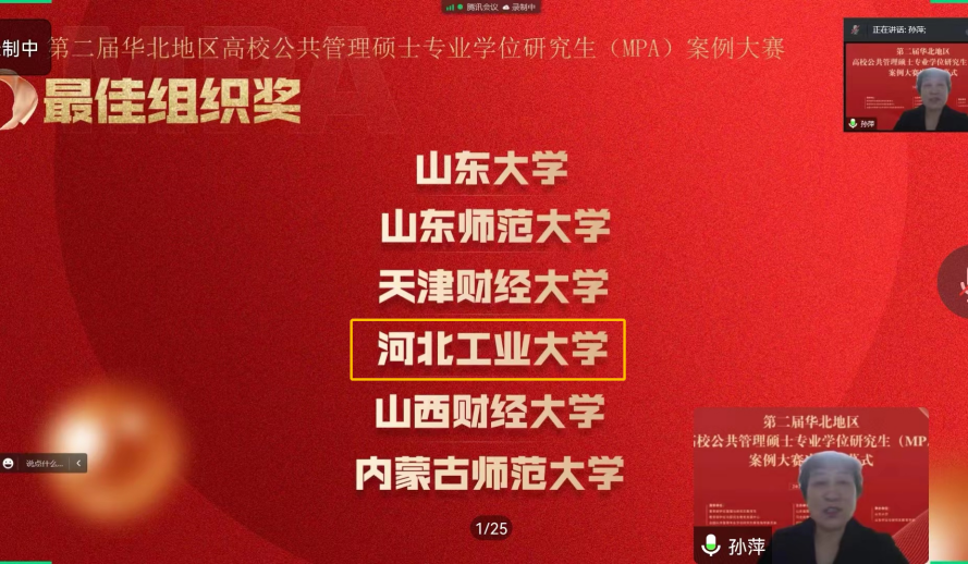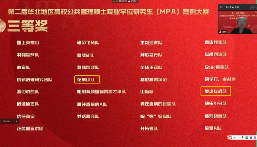 2022年12月11日,第二届华北地区高校公共管理硕士专业学位研究生(MPA)案例大赛决赛拉开序幕,本次比赛以线上腾讯会议的方式举行,共48支队伍进入决赛。