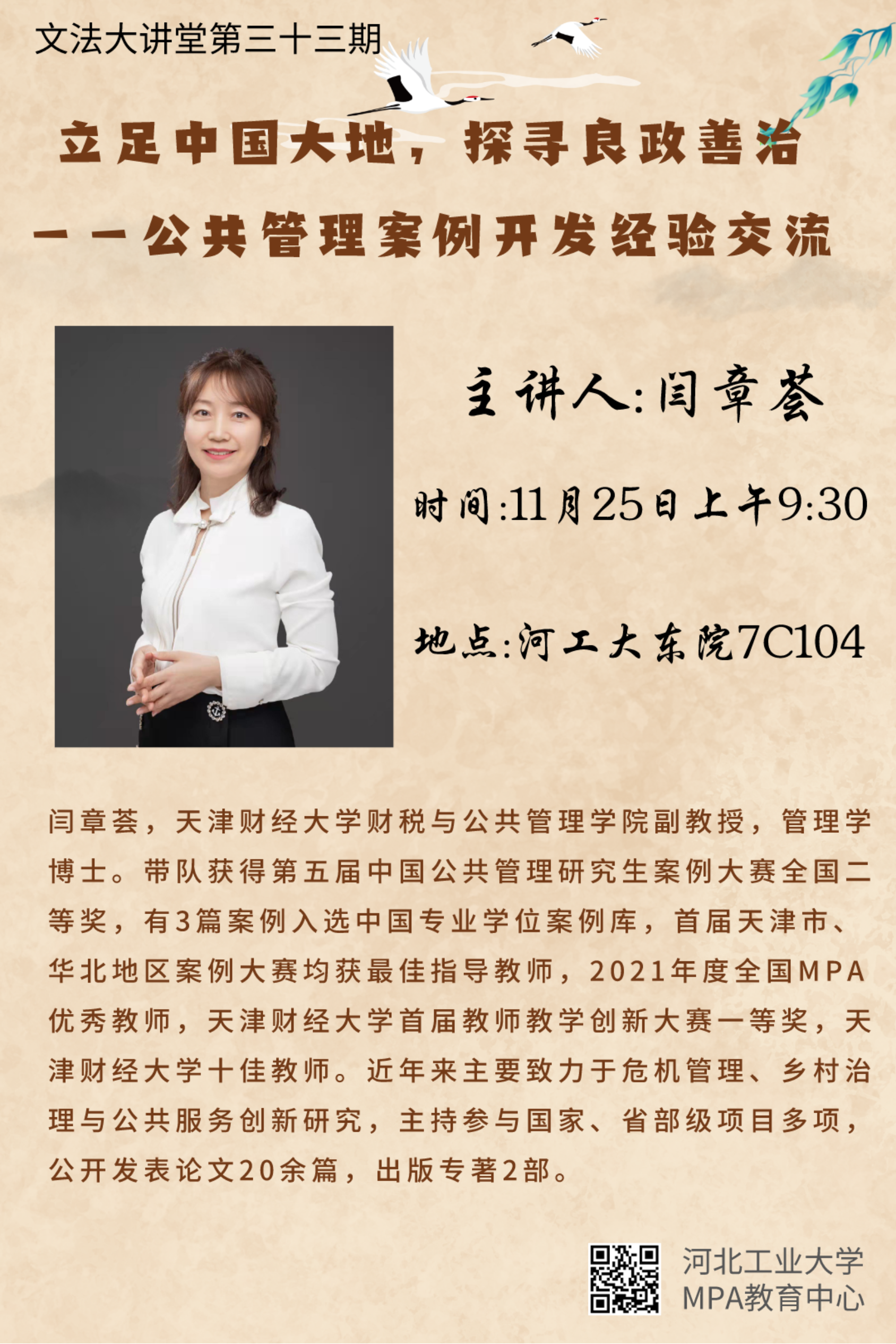 讲座题目:立足中国大地,探寻良政善治——公共管理案例开发经验交流