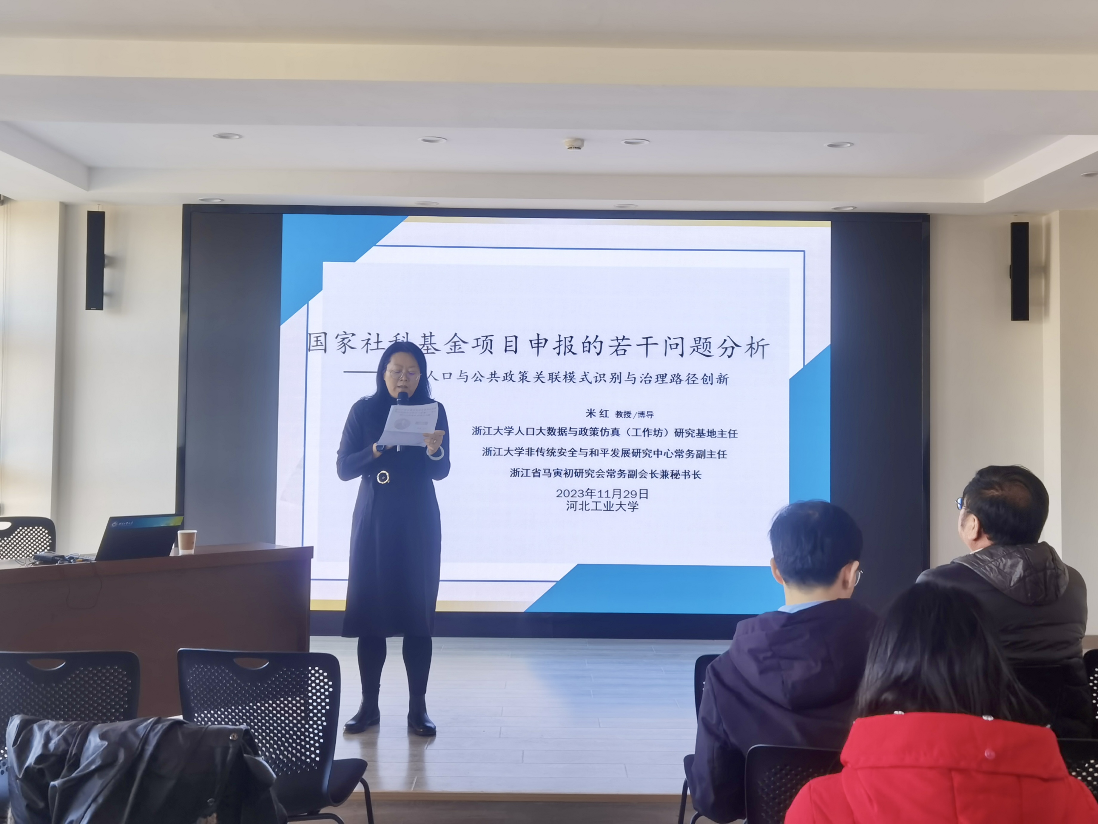 2023年11月29日下午14:30,浙江大学公共管理学院米红教授受邀为师生们带来了题为《国家社科基金项目申报的若干问题分析——兼谈人口与公共政策关联模式识别与治理路径创新》的专题讲座。本次讲座在h视频 东院第七教学楼A区508教室举办,h视频 院长蒋冰晶主持,h视频 部分师生参加。