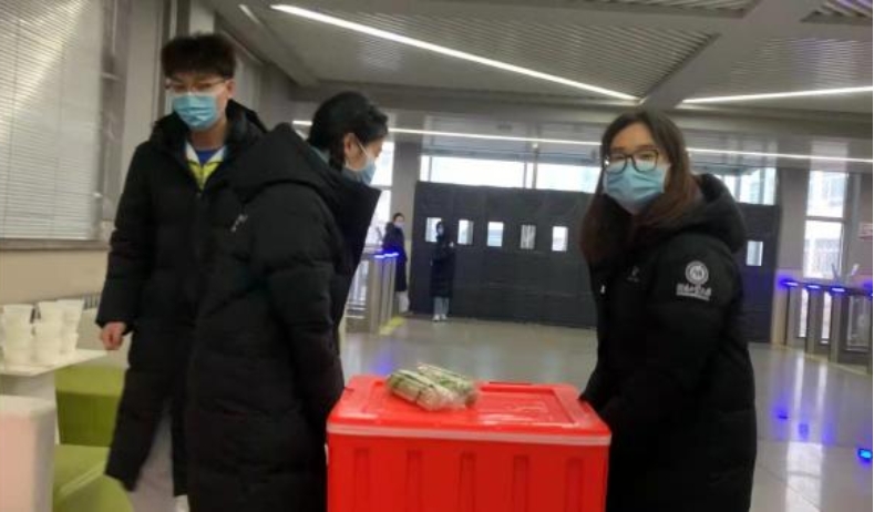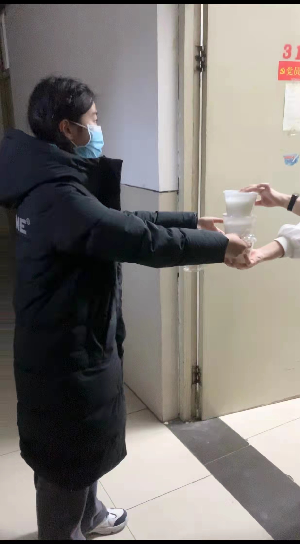 随着疫情的出现,学校立即启动疫情防控应急预案,设立核酸检测点,迅速组织开展全员核酸检测,并全力做好在校师生员工饮食和各项生活服务保障。校内各部门联动,共同出力,将数百份午餐和防疫物资一一装箱,送至冬奥志愿者所在的宿舍楼,h视频 MPA学生黄媛媛和陈虹宇主动请缨,成为送餐小分队的成员,每天为冬奥志愿者女生所在宿舍楼送去一日三餐。“开饭啦开饭啦,同学请来取下餐”,每天饭点楼道里都能听见她们暖心的声音。