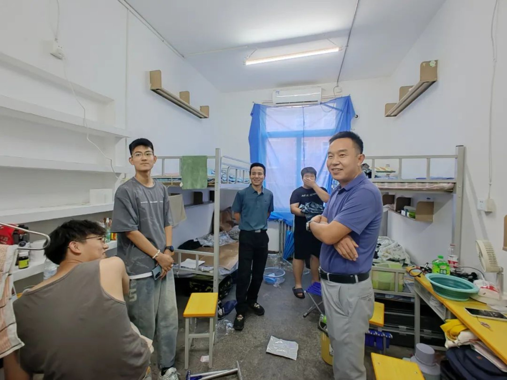 h视频 领导班子探访了新生宿舍,关注了学院新生的入学状况;除此之外,各位领导还和工作人员进行了亲切交谈,向他们询问了迎新工作的开展情况,展示了学院领导对本次迎新工作的高度重视,让学生们感受到了文法学院的贴心与温暖。