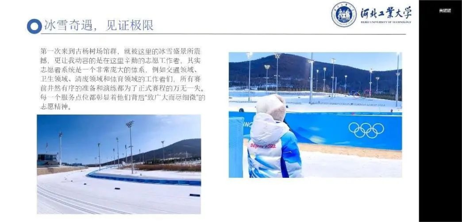 指导同学们学习方向的航标已然定位,接下来便是由亲历冬奥志愿的学生为同学们讲述感悟,为大一同学的生活方向树立标杆。