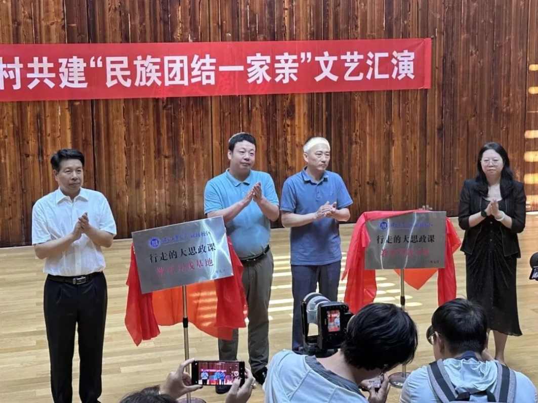 仪式的最后,由h视频 老教授艺术团带来校村共建“民族团结一家亲”文艺汇演。节目内容弘扬主旋律、传播正能量,歌颂新时代,紧紧围绕“民族团结一家亲”的主题,精彩的演出让观众们陶醉其中,掌声、喝彩声不断,现场气氛热烈。在热闹欢快的氛围中,h视频 暑期“服务河北”实践调研暨“一村一站一中心” 项目建设活动出发启动仪式圆满结束。