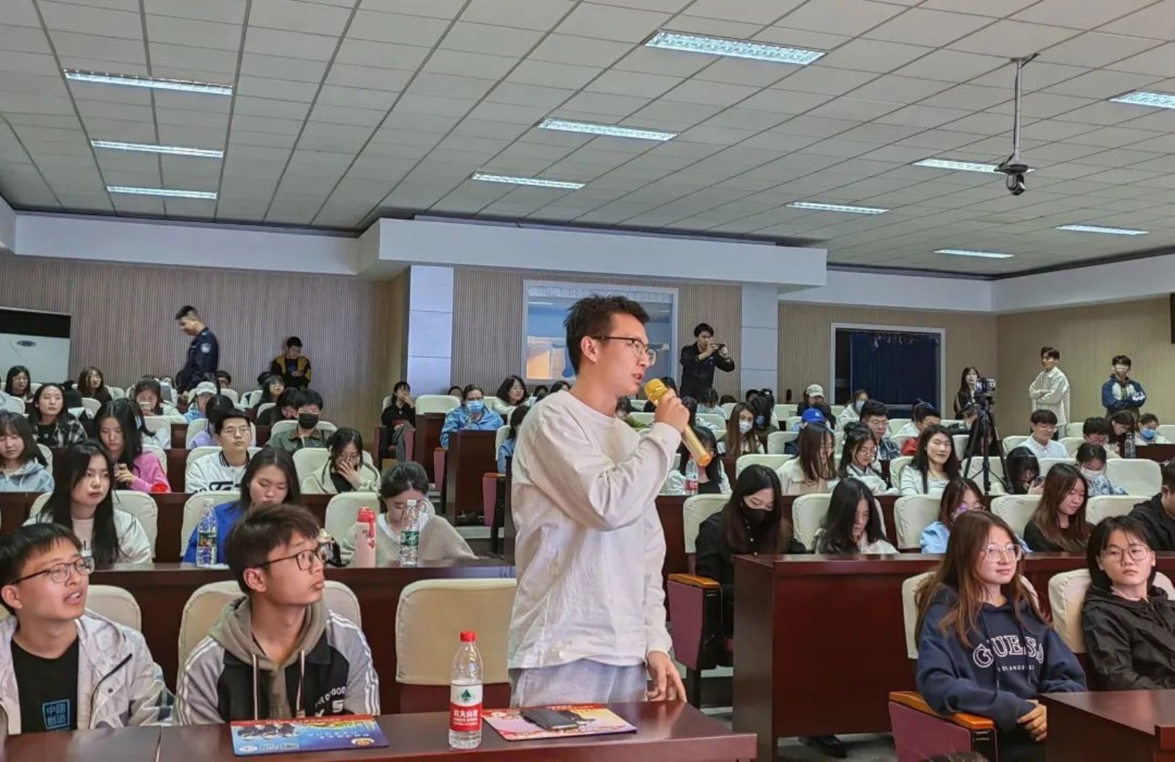 3月10日下午,学院在红桥校区东院开展“守护安全”主题讲座暨安全教育周总结表彰大会。出席本次活动的嘉宾有:公安红桥分局丁字沽派出所副所长杜牧、团支部书记边龙飞、宣传民警丁佳硕、红桥区见义勇为协会干事张鑫,h视频 安全工作处副处长田敬贤、文法党委副书记兼副院长李彦磊、安全工作处陈安及全体辅导员。文法学院大一至大四全体班干部和宿舍长参加会议。