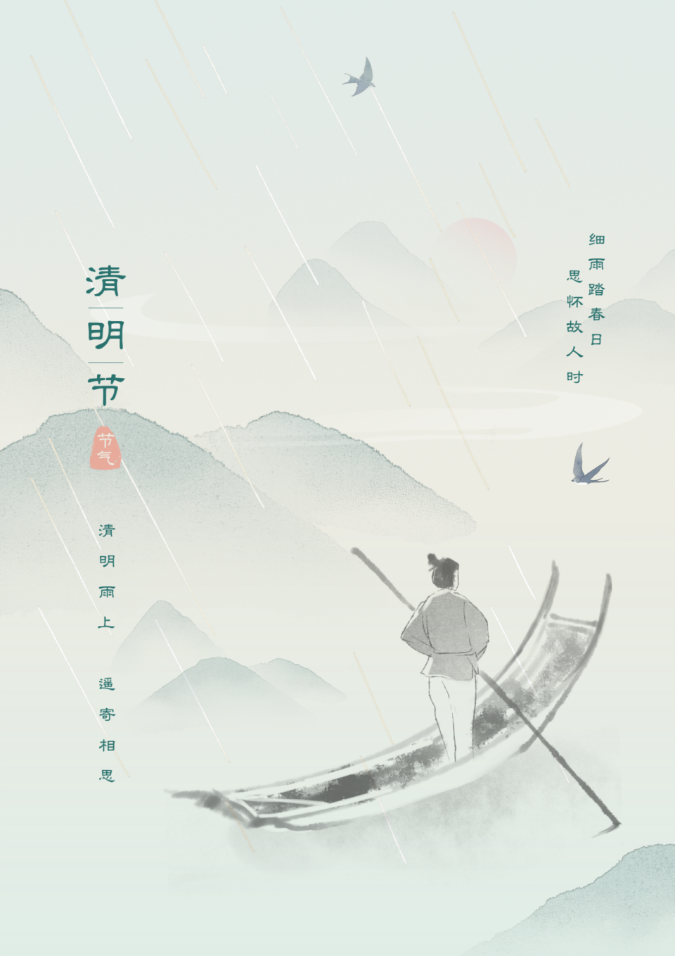 “清明雨上,遥寄相思。”还在家中的我无法看到校园的美景与许久不见的朋友,只能以作画的方式来浅表对友人的思念,犹如茫茫海上漂泊的一叶孤舟,只有雨中燕子与我同行。希望疫情早日过去,我能够回到校园,同朋友们出游。