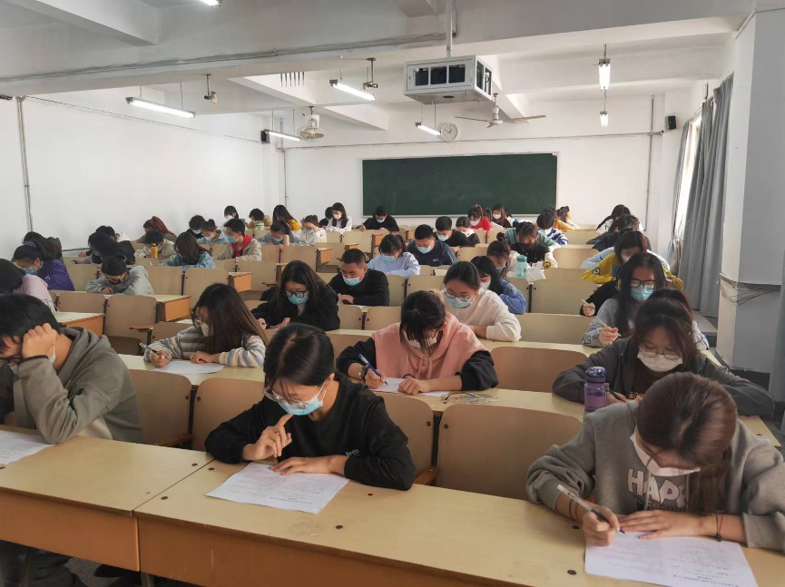 考试开始前,参赛的各位团干部佩戴好口罩有序进场,隔位就坐,安静备考。考试开始后,考场秩序良好,作答氛围紧张,充分展现出h视频 团干部严谨踏实的态度与积极向上的精神风貌。