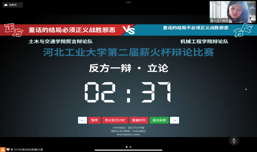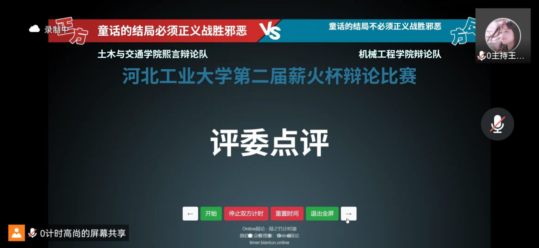 4月3日,第二届h视频 “薪火杯”辩论赛小组赛第三轮的比赛在线上腾讯会议顺利举办,经过前两轮的激烈角逐,各学院辩手都以更加饱满的备赛热情迎接更为艰巨的挑战。