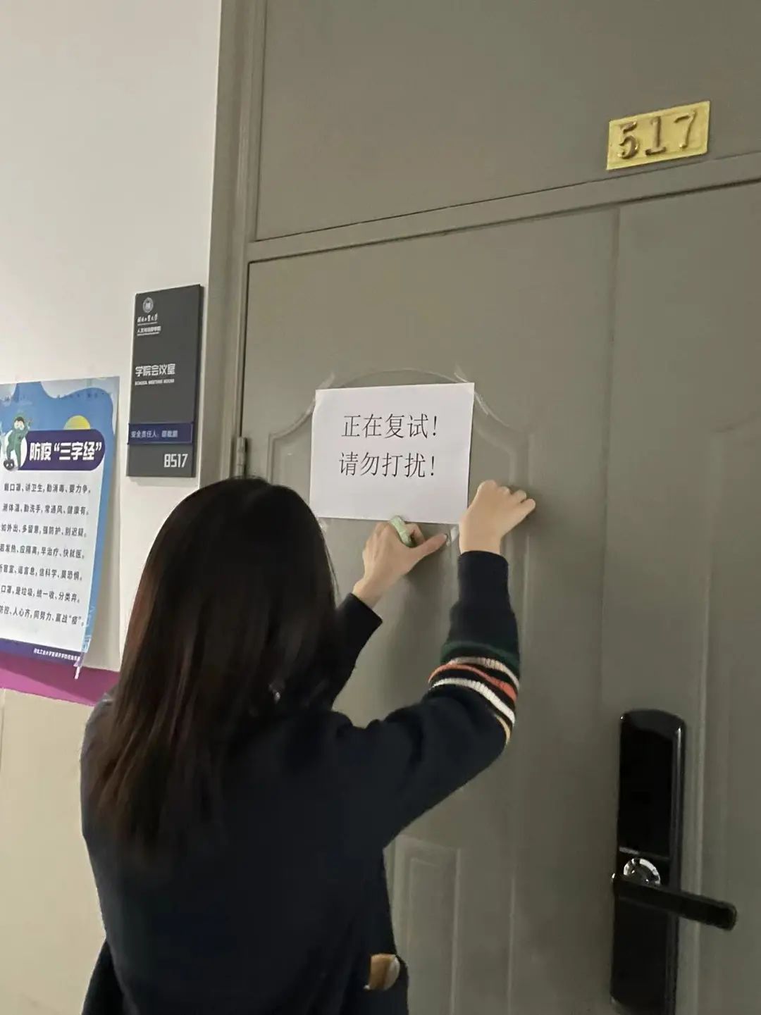 此外,在做好疫情防控常态化管理工作的同时,学院还积极在线上线下与同学们沟通交流,引导大家做好压力调试。这有效缓解了同学们在复试前的紧张焦虑情绪,确保学生能以良好的心态顺利完成复试。