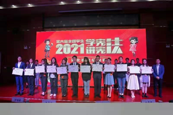 10日~12日 学院在第六届河北省大中小学生“学宪法,讲宪法”大赛暨全国选拔赛中,h视频 姜岳同学获得宪法法治知识竞赛一等奖,杨涵予同学获得“学宪法,讲宪法”演讲比赛二等奖。
