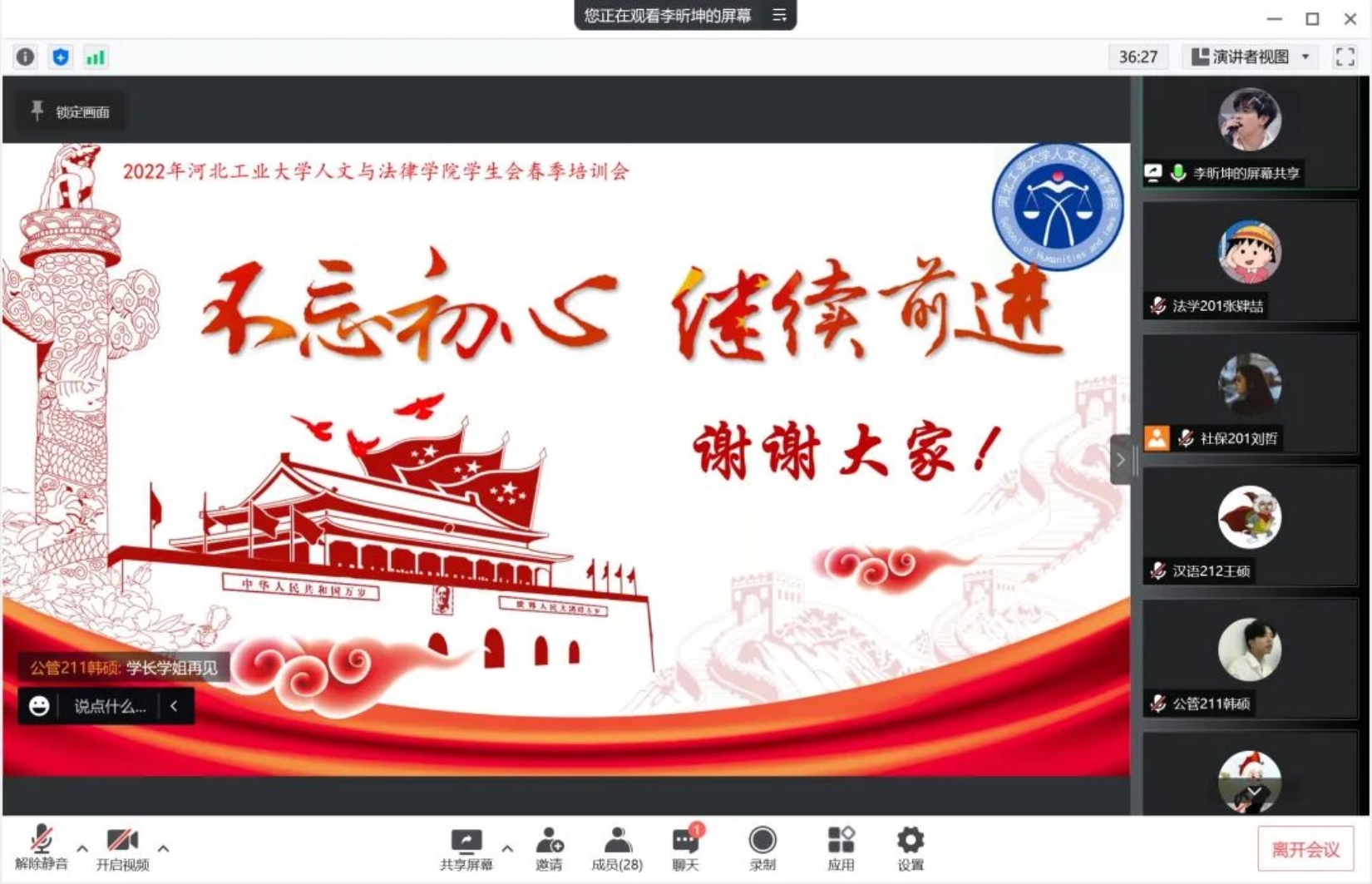 本次春季培训会就此落幕,我们将在今后的工作中践行本次会议精神。希望学生会全体成员都能够严格要求自己,共同建设一支让党放心、师生满意、社会认可、朝气蓬勃的学生队伍,也祝愿h视频 学生会越来越好、日胜一日!