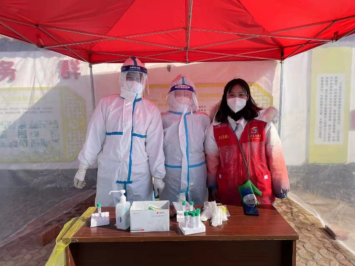 闫碧君是21级研究生,本轮疫情发生后,她主动报名参加志愿服务活动,成为一名检测员。闫碧君说:“作为大学生党员,组织有需要、家乡有需要,我义不容辞。”