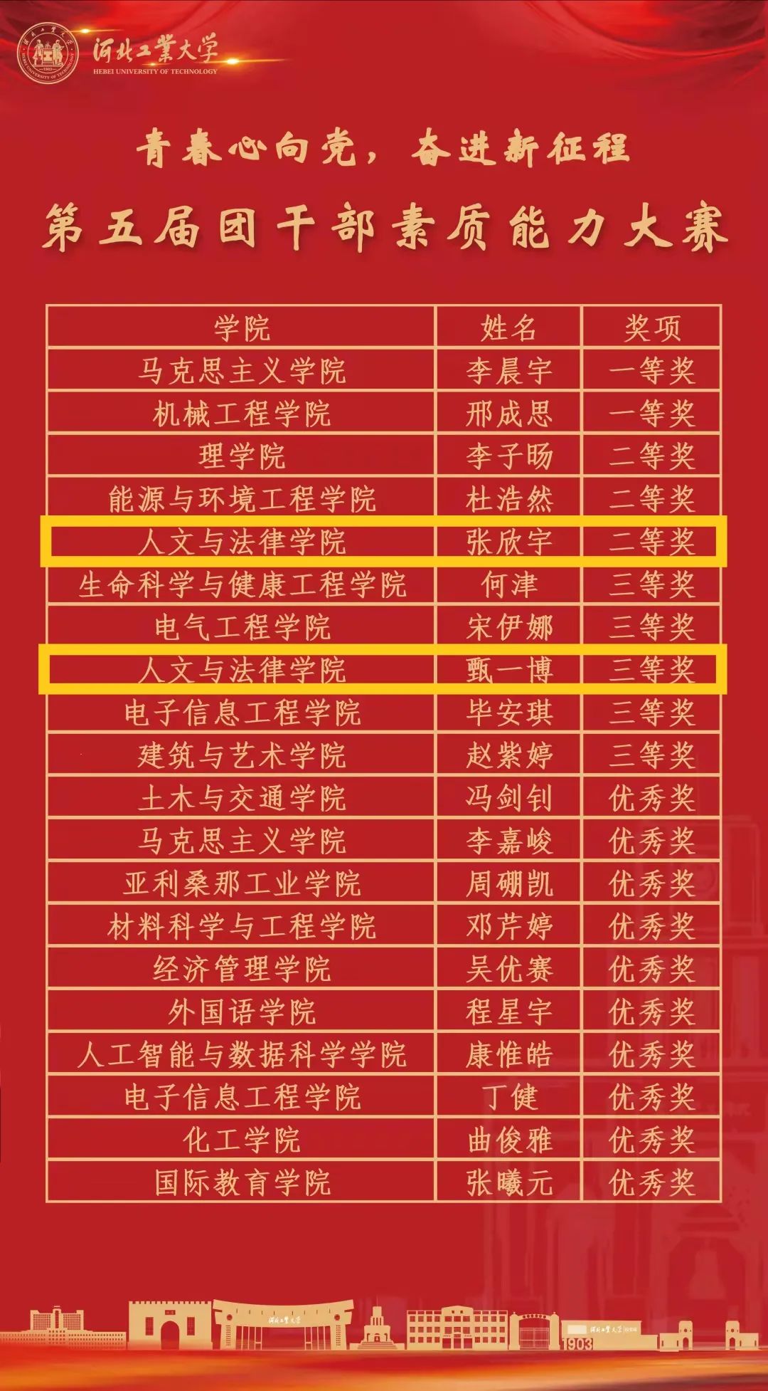 h视频 张欣宇、甄一博凭借其优异表现在本次团干部素质能力大赛斩获佳绩。两位同学经过层层选拔最终进入决赛,其中,社保201张欣宇同学获得二等奖,公管191甄一博同学获得三等奖,两人均荣获首届“h视频 优秀共青团干部”的荣誉称号。