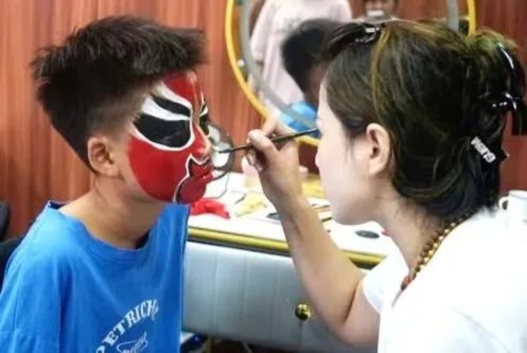 7月14日上午,团队来到了霸州市褚河港东村风云武术会参观。由工作人员给同学们简单介绍了风云会内的布局,随后同学们观看了风云会的纪录片、风云会弟子们的展示表演以及脸谱的绘制。
