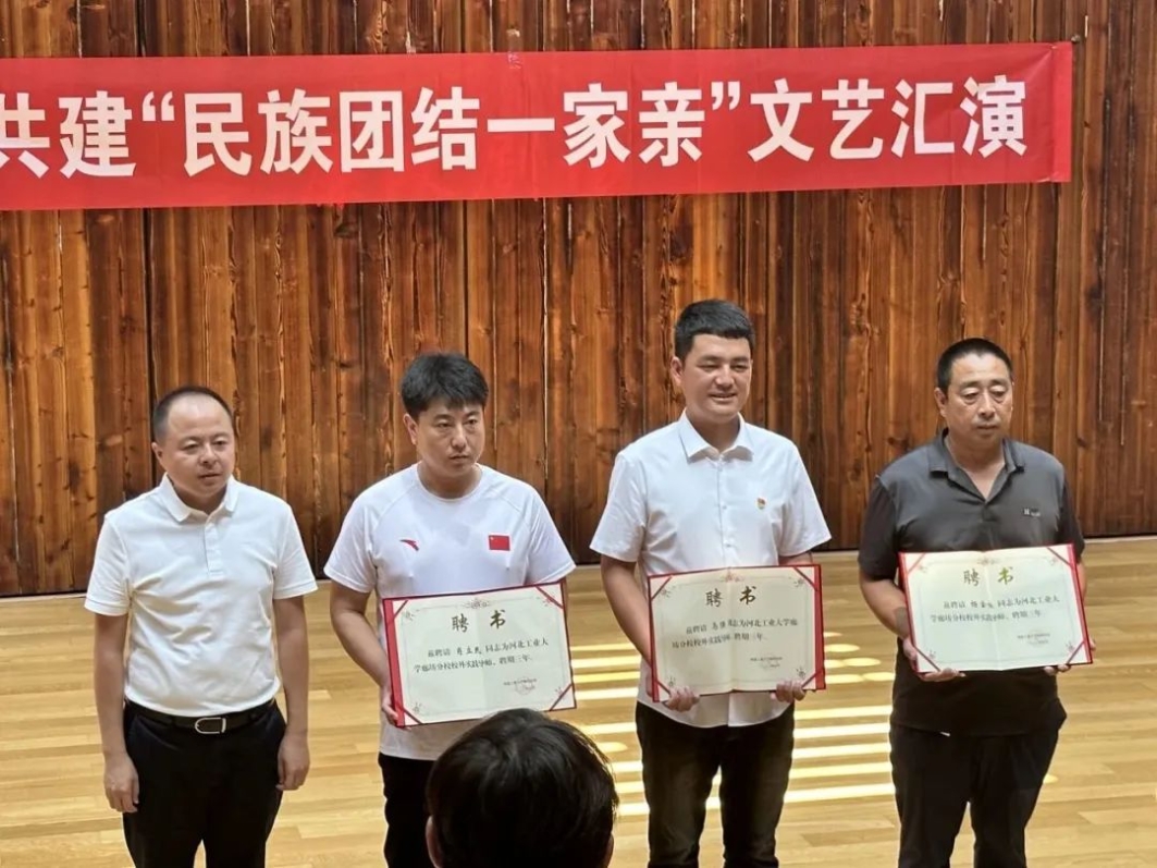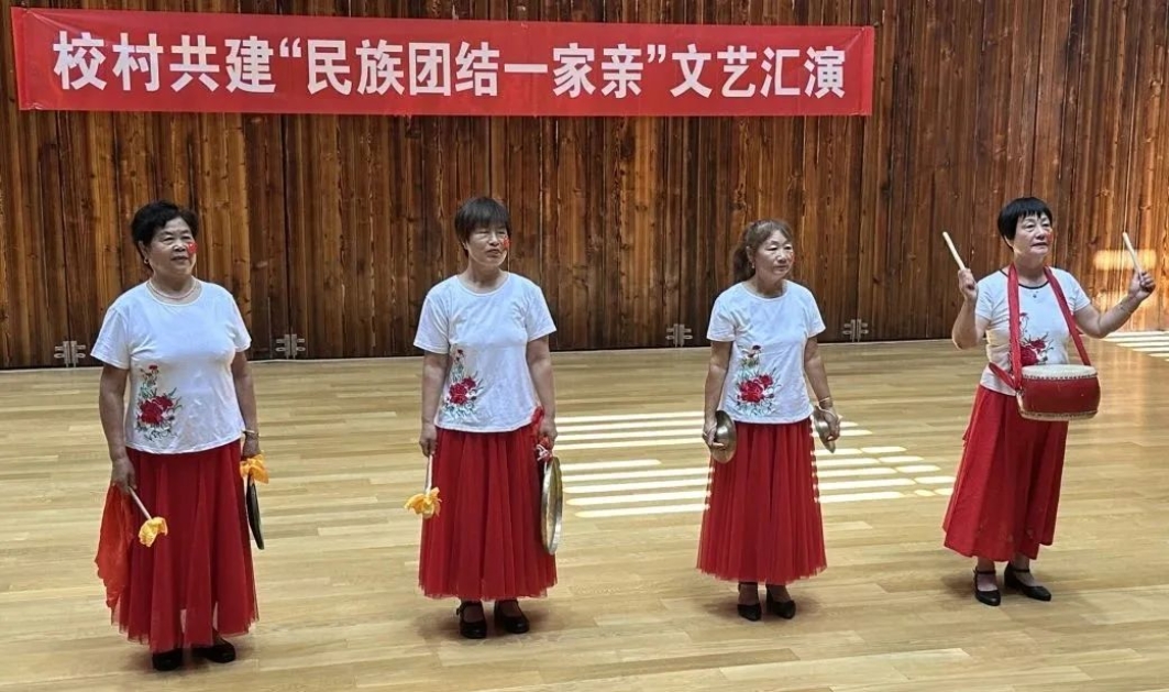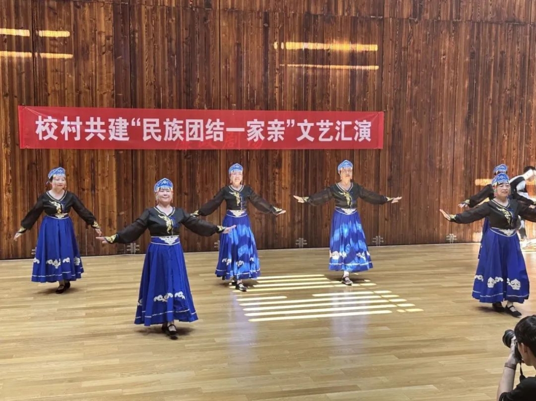 仪式的最后,由h视频 老教授艺术团带来校村共建“民族团结一家亲”文艺汇演。节目内容弘扬主旋律、传播正能量,歌颂新时代,紧紧围绕“民族团结一家亲”的主题,精彩的演出让观众们陶醉其中,掌声、喝彩声不断,现场气氛热烈。在热闹欢快的氛围中,h视频 暑期“服务河北”实践调研暨“一村一站一中心” 项目建设活动出发启动仪式圆满结束。