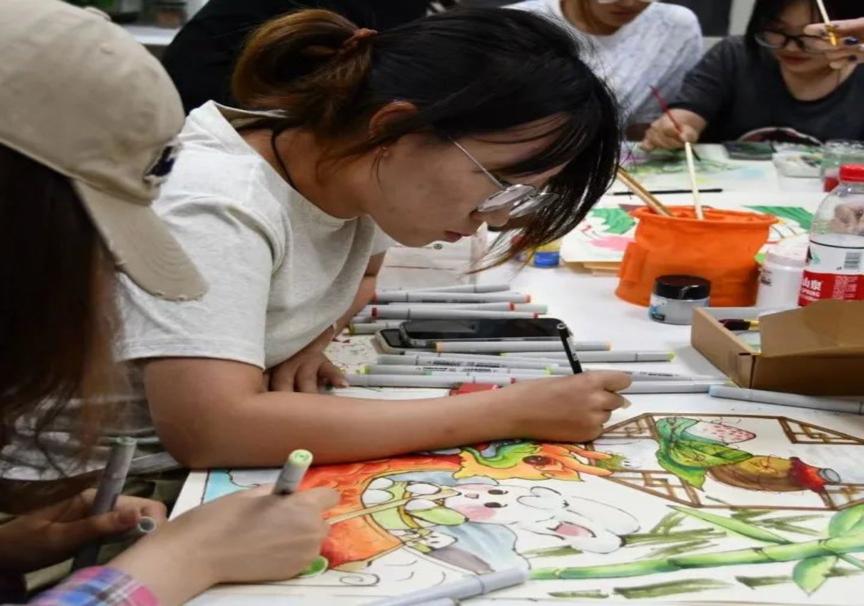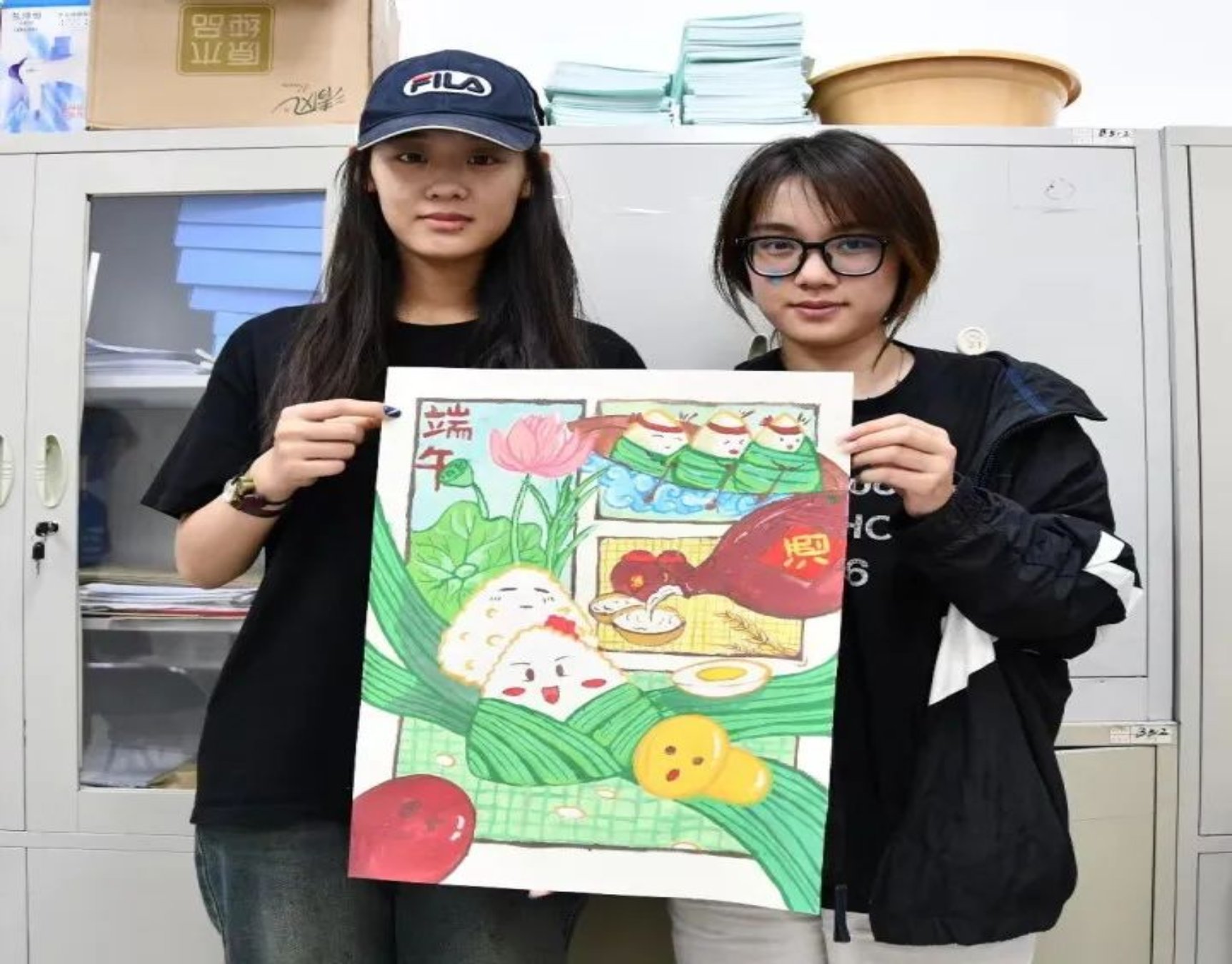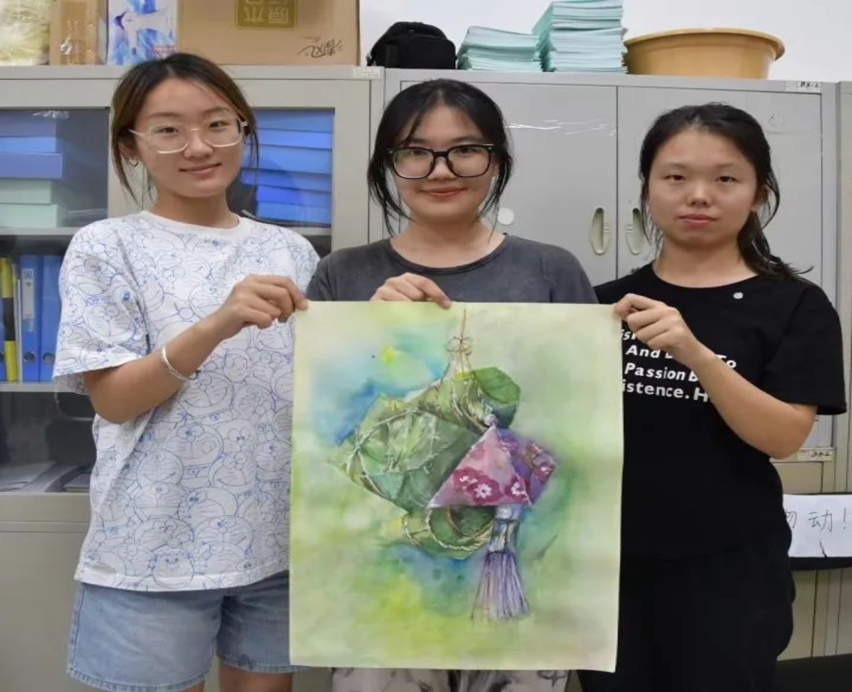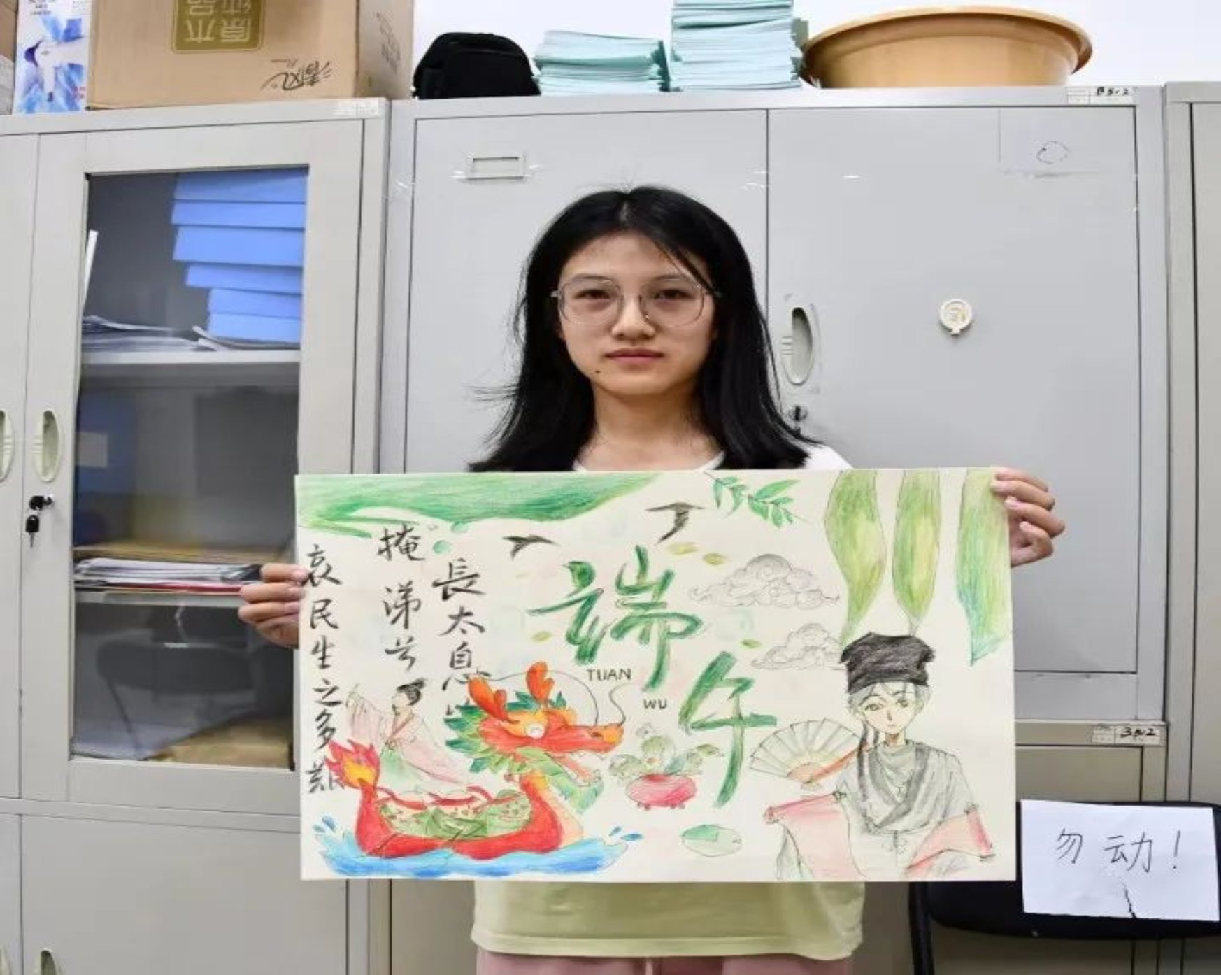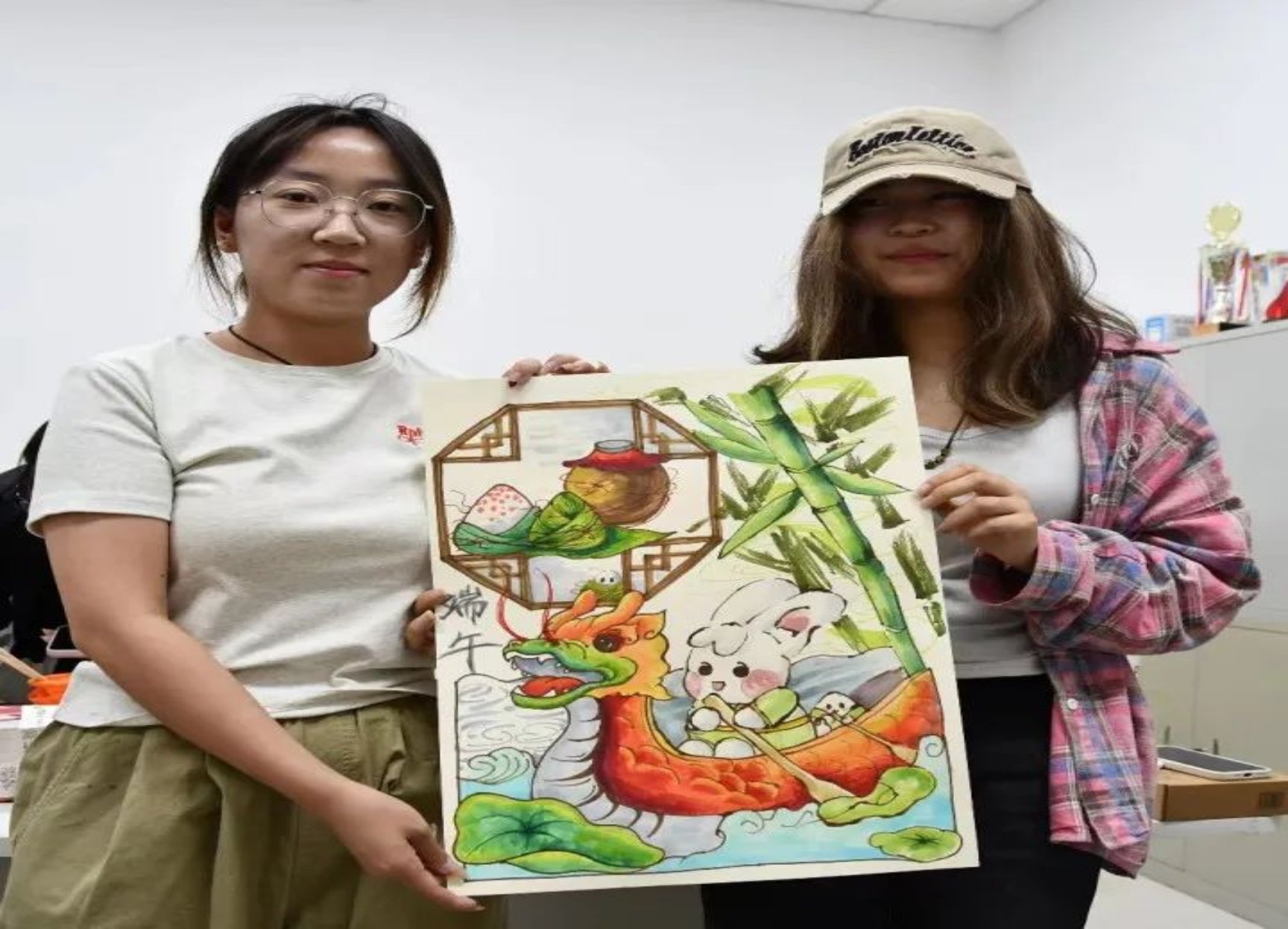 建筑与艺术设计学院的11名同学也来到活动现场,他们将自己对传统节日文化的感悟付诸笔端,用清新亮丽的色彩用心绘制着赛龙舟、包粽子、插茱萸等端午习俗场景,表达了他们对优秀传统文化、中华瑰宝的热爱。