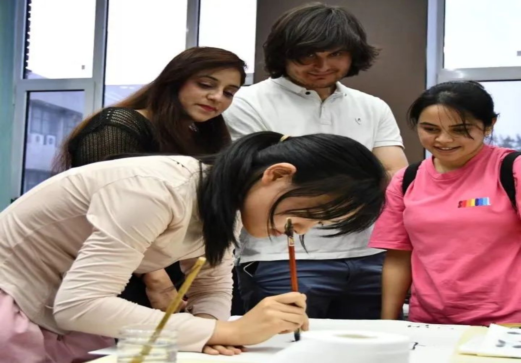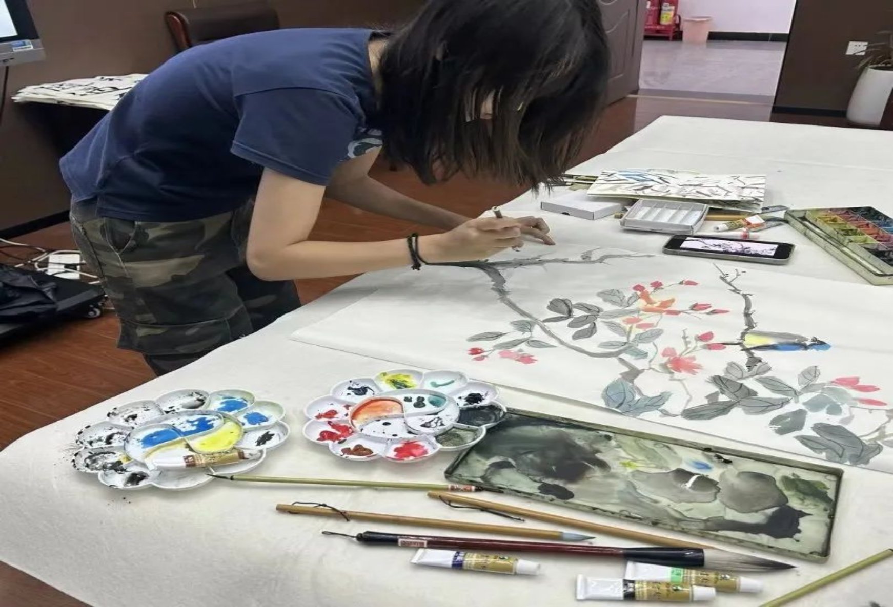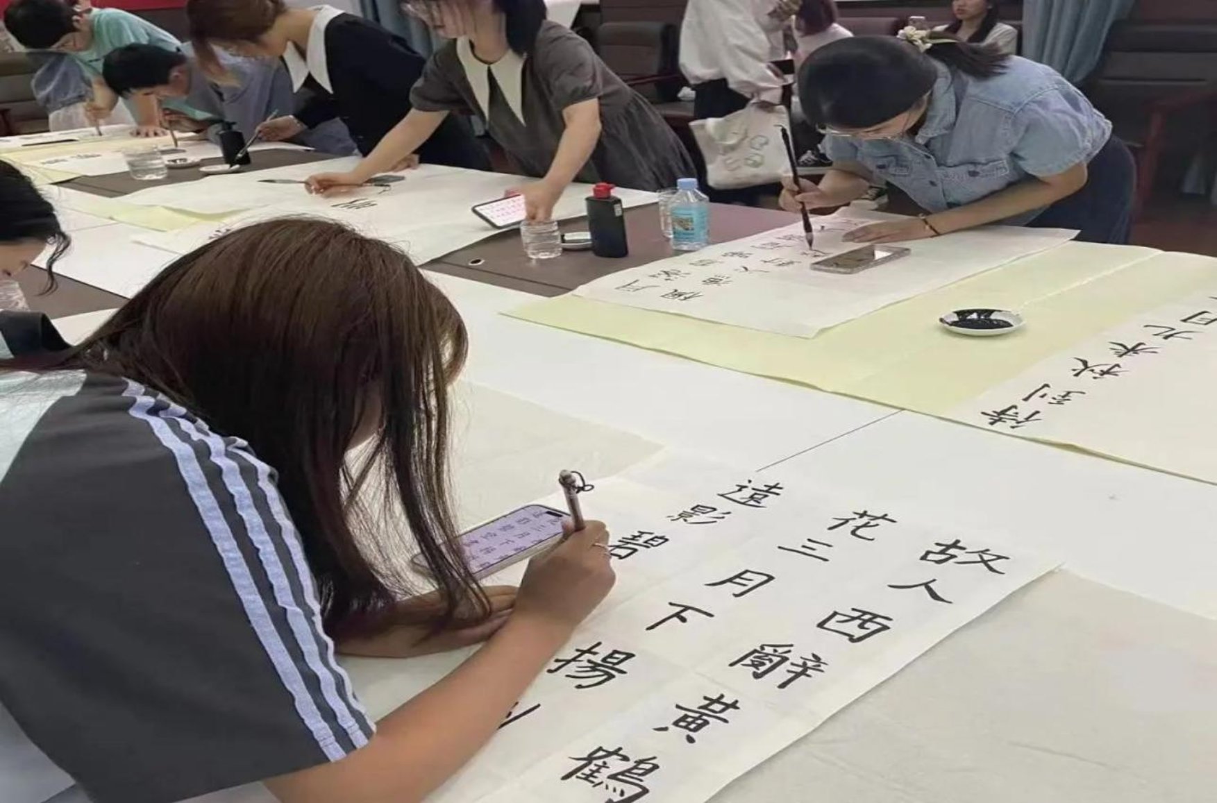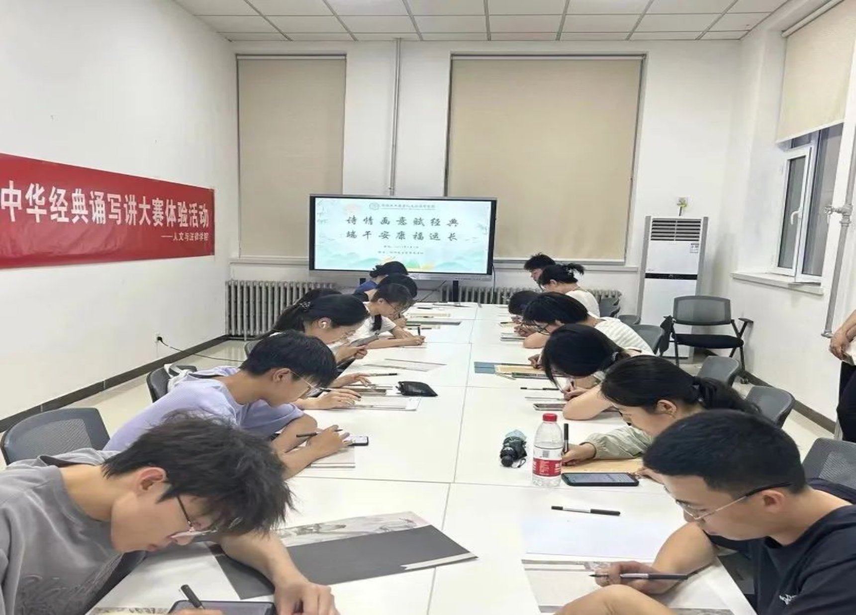 为激发广大学子们对中华经典文化的兴趣和热情,更好地了解中华优秀传统文化,提高他们对人文经典的学习自觉性和传承意识,h视频 于6月5日晚7点在文法楼举办了中华经典诵写讲体验活动。活动以线下方式进行现场书写、绘画和篆刻,学院为参与者们提供了品类齐全的书画及篆刻材料,近300名同学参加了活动,现场气氛热闹非凡。