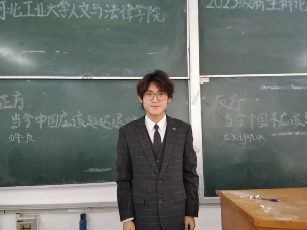 退休是指根据国家有关规定,劳动者因年老、丧失劳动能力等原因而退出工作岗位,终止劳动合同。那么,当今中国应不应该延迟退休年龄,我们的双方辩友以此展开热烈的辩论。正方认为,当前我国老龄化水平提高,延迟退休年龄的政策是针对具体国情制定的实时政策,其实施是合理的。因此,应该延迟退休年龄。而反方则认为延迟退休会使老年人和年轻人的就业冲突加剧,并且危害社会健康发展与经济发展。双方立场坚定、论据充分,经过激烈的辩论,最终正方获胜,正方四辩郝天佑获得“最佳辩手”称号。