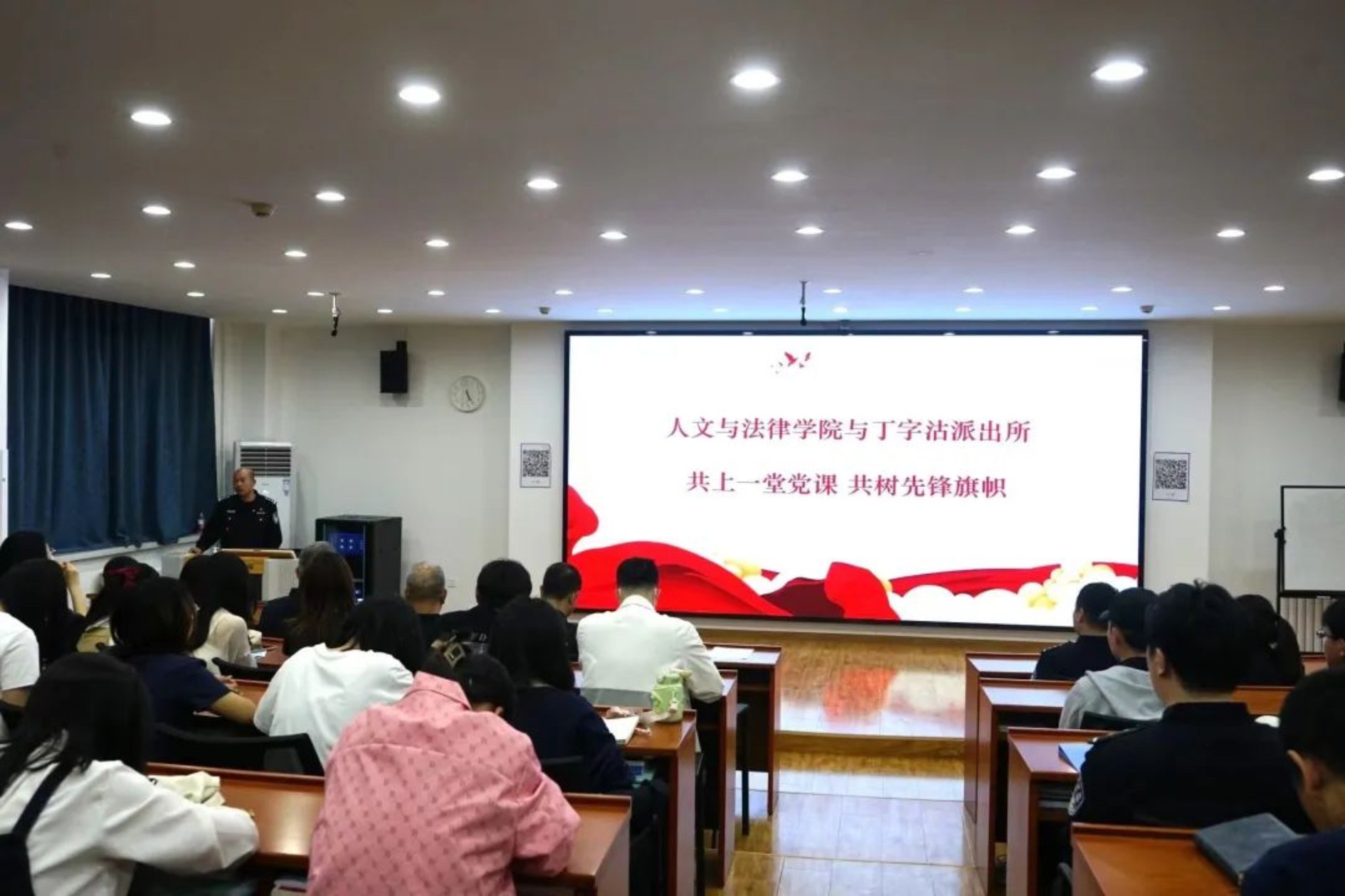 4月19日下午,一场“特殊”的党课在h视频 开讲了,丁字沽派出所15位民警和文法学院70余名党员代表共同聆听一堂党课。