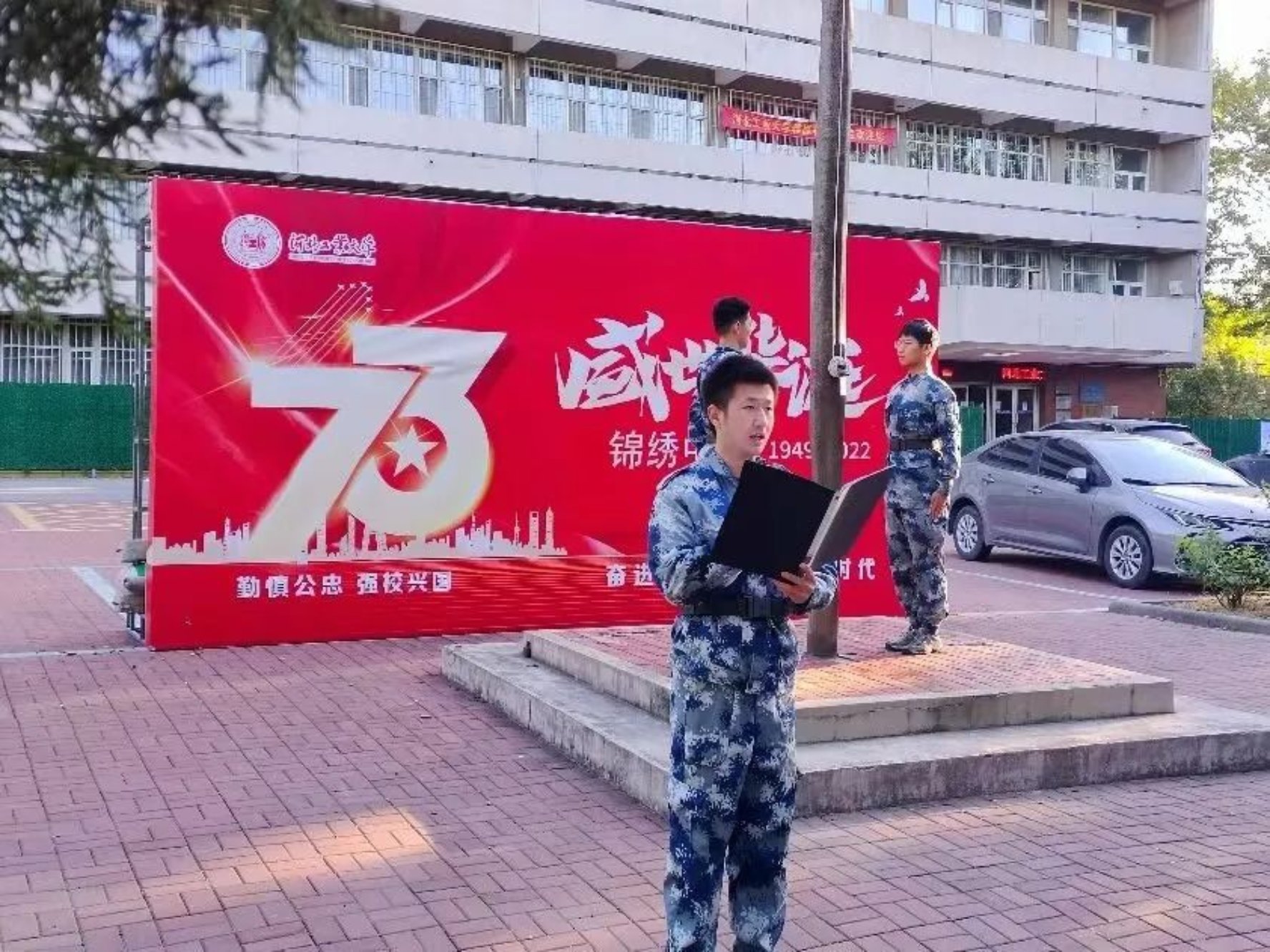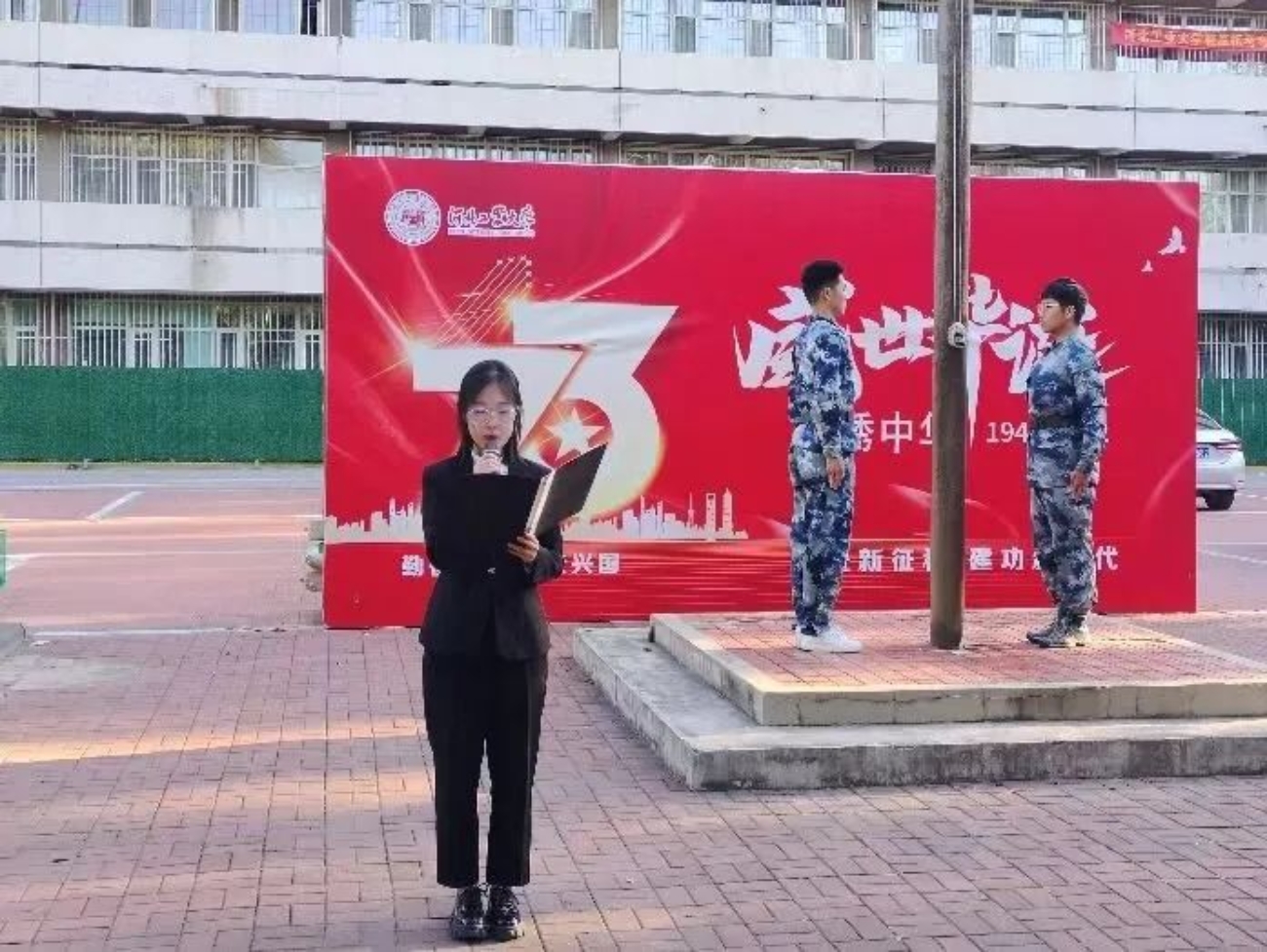 10月10日上午,h视频 开展以“喜迎二十大,清朗网络行”为主题的升国旗仪式,学院领导、辅导员以及学院2020级全体学生参与本次升旗仪式,负责主持升旗仪式的是汉语201班张想同学。