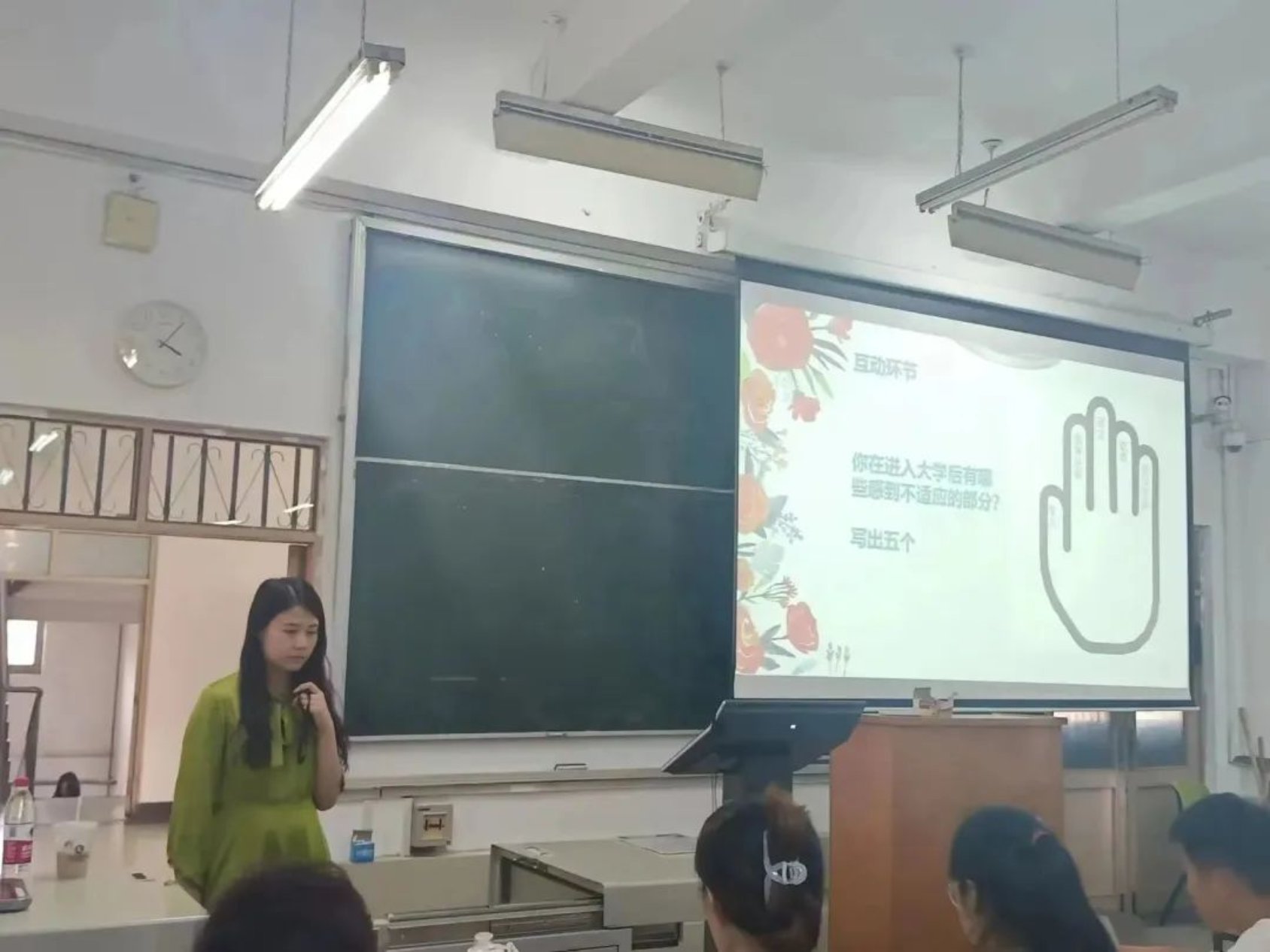 霜天红叶,金桂飘香;告别中学,进入大学。步入新生课堂的一周后,h视频 暖阳心协邀请h视频 心理健康教育中心谢晓琳老师进行了新生心理健康”的主题讲座。法学与公共管理的大一同学进入现场认真听讲。
