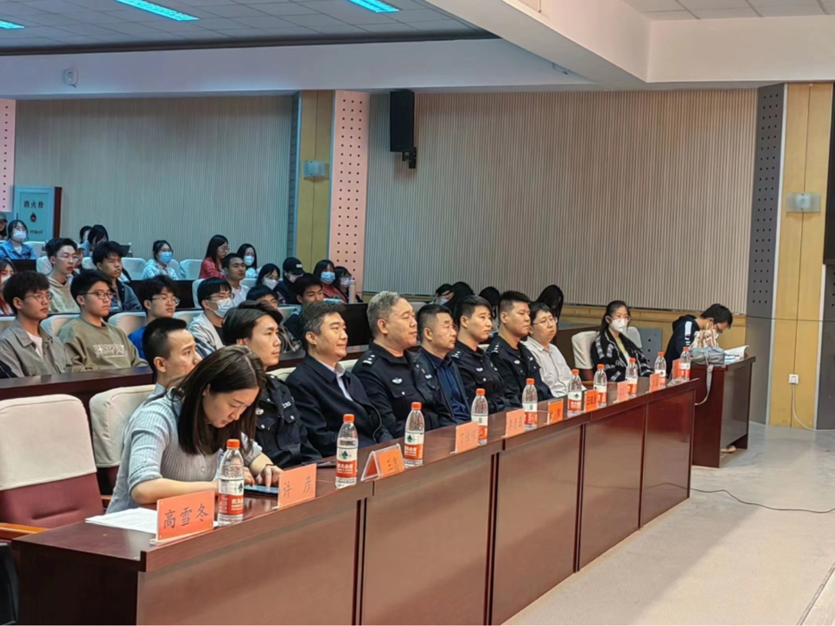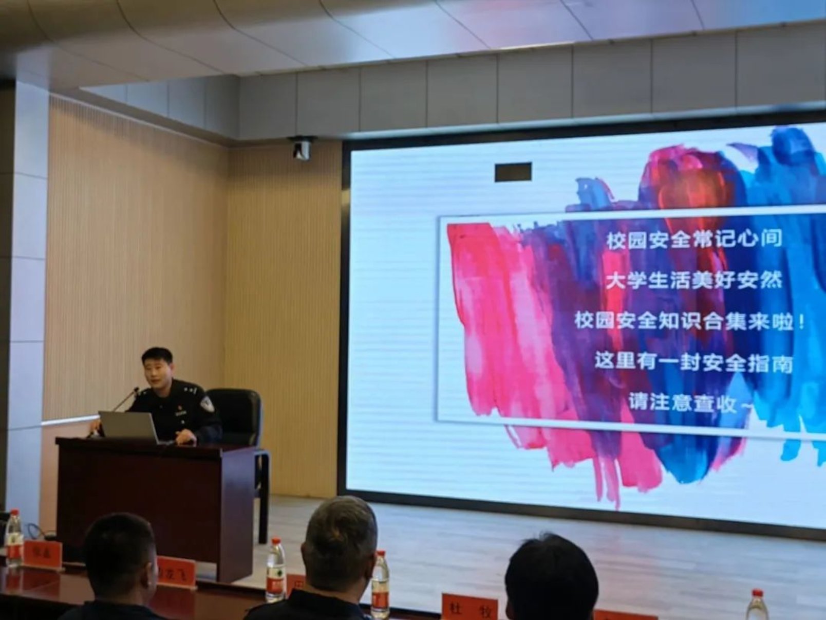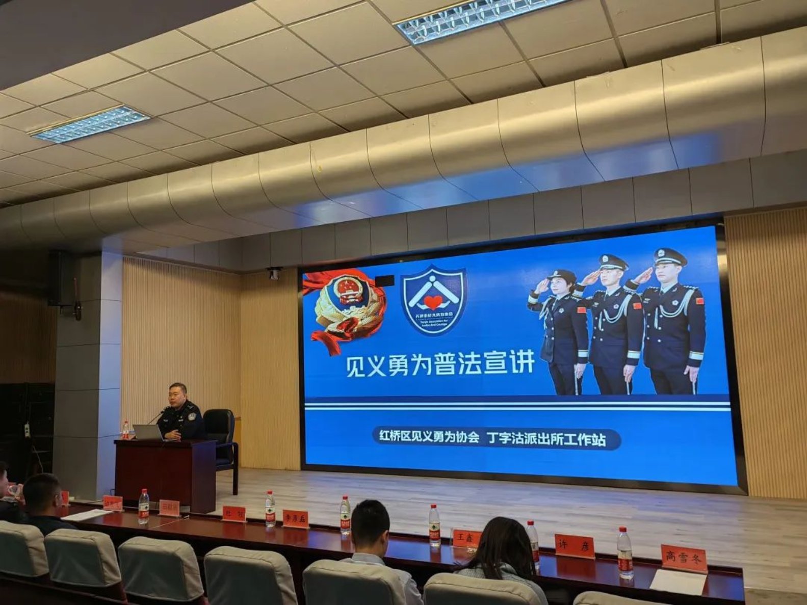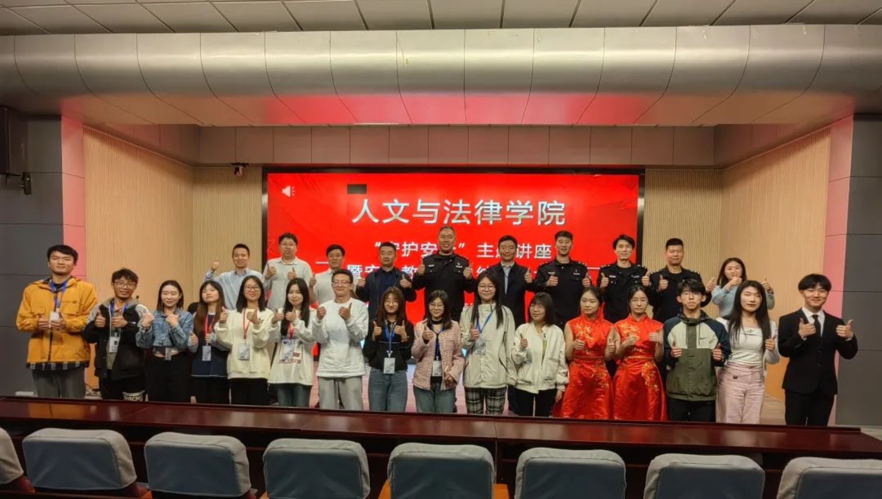 3月10日下午,学院在红桥校区东院开展“守护安全”主题讲座暨安全教育周总结表彰大会。出席本次活动的嘉宾有:公安红桥分局丁字沽派出所副所长杜牧、团支部书记边龙飞、宣传民警丁佳硕、红桥区见义勇为协会干事张鑫,h视频 安全工作处副处长田敬贤、文法党委副书记兼副院长李彦磊、安全工作处陈安及全体辅导员。文法学院大一至大四全体班干部和宿舍长参加会议。