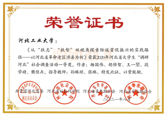 在调研河北中,h视频 8支队伍成功立项获奖,其中一等奖1项,二等奖2项,三等奖1项。