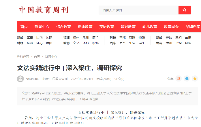 在上一学年的社会实践组织过程中,h视频 师生探究出一条研学结合、具有文法特色的社会实践道路。我院结合专业特色,在专业教师的指导下将课堂所学落实到实践过程中。比如,在法学专业老师的指导下,爱法创新小队进行创新创业法学教育系列探究课题;汉语专业同学在孙伟龙国家项目支持下开展古汉语文化研究课题;公管专业同学聚焦区域协调发展热点开展相关的社会实践课题。社会实践与所学专业知识高度的结合层次在逐渐加深。