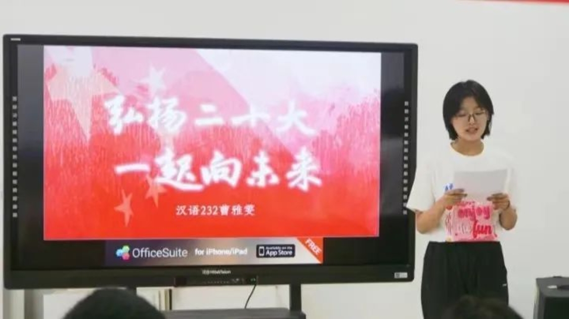 曹雅雯:时代是出卷人,我们是答卷人,人民是阅卷人。吾辈青年,当怀赤子之心,以一腔爱国热血,一番少年志气,将青春献礼党的二十大,在新时代新征程上展现新气象新作为,弘扬党的二十大精神,一起向未来!