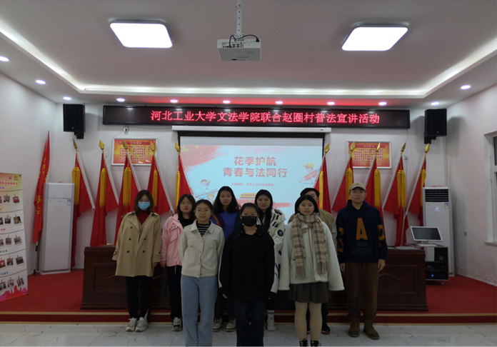 13日 学院与大学生法律服务中心在双口镇赵圈村联合举办“花季护航,青春与法同行”普法活动,村民参与人数40人,赵圈村村委会反馈此次合办效果较好。