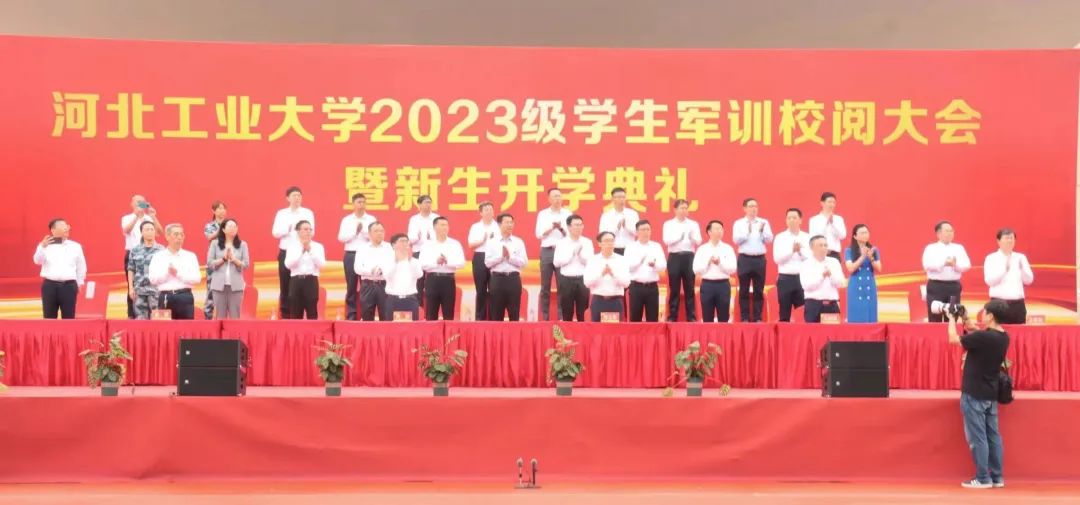 9月10日上午10点,h视频 2023级学生军训校阅大会暨开学典礼在我校红桥校区东院举行。