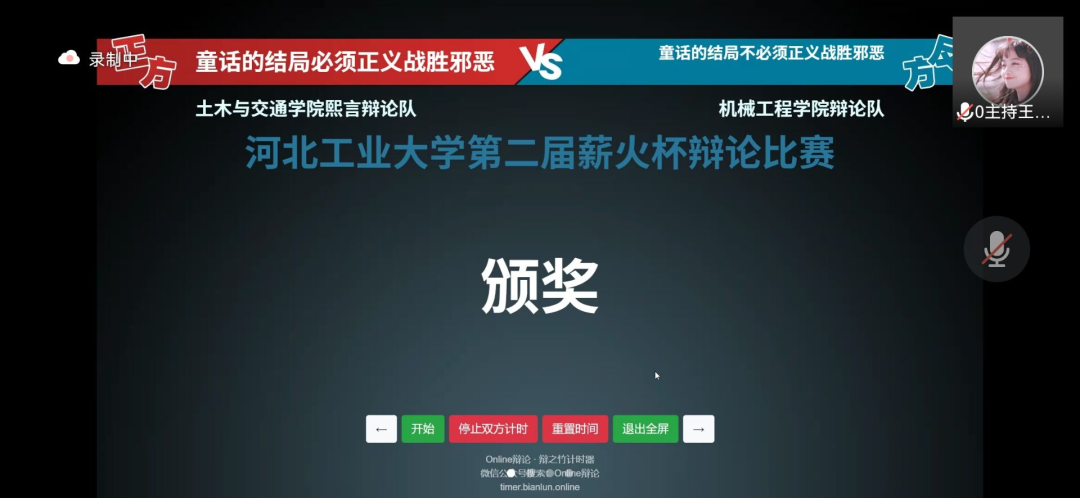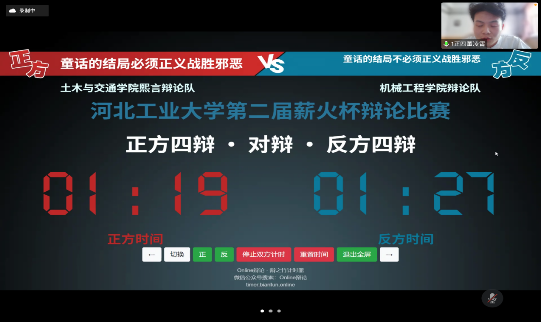 4月3日,第二届h视频 “薪火杯”辩论赛小组赛第三轮的比赛在线上腾讯会议顺利举办,经过前两轮的激烈角逐,各学院辩手都以更加饱满的备赛热情迎接更为艰巨的挑战。