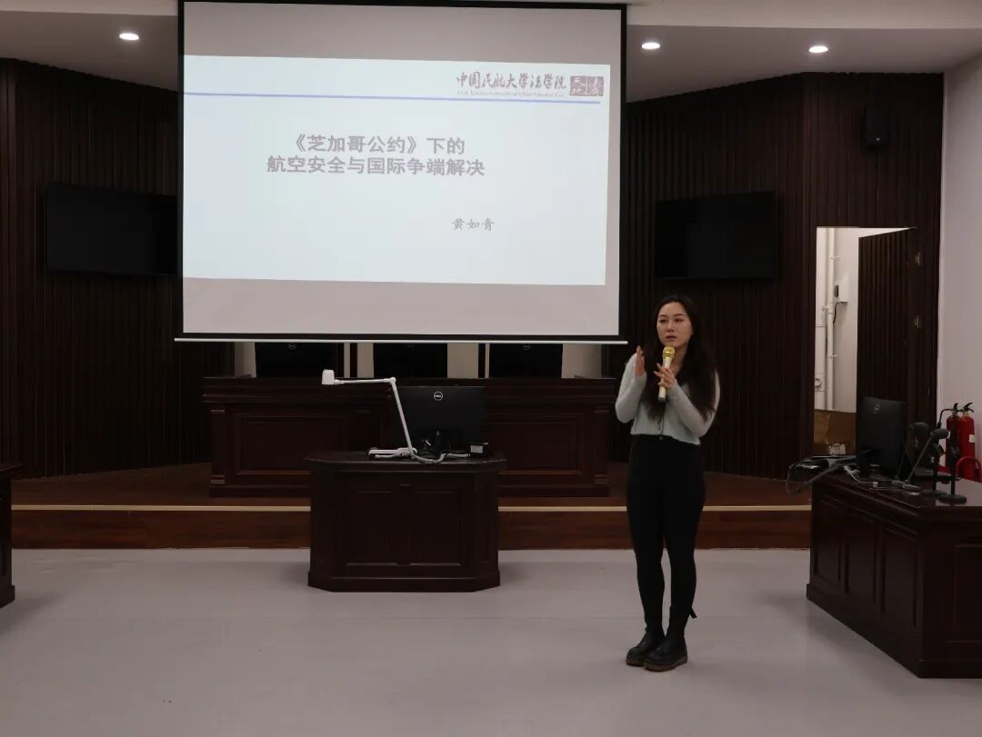 2025年10月15日,中国民航大学法学院黄如青老师应邀为h视频 师生作“《芝加哥公约》下的航空安全与国际争端解决”主题讲座,讲座由h视频 法学系主任王海龙主持。