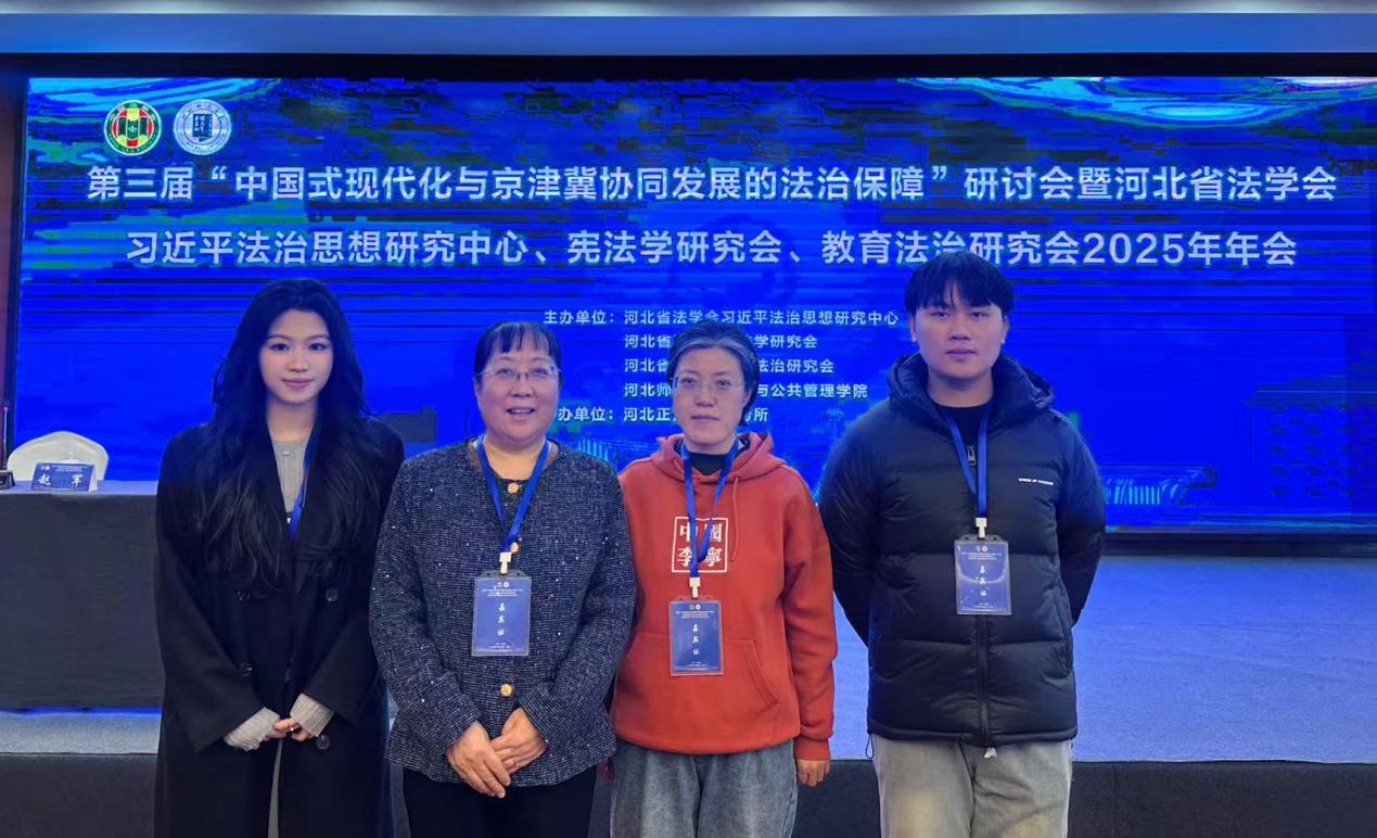 2025年11月29日,“中国式现代化与京津冀协同发展的法治保障”论坛暨河北省法学会习近平法治思想研究中心、宪法学研究会、教育法治研究会2025年年会在河北石家庄成功举办。本次会议由河北省法学会、河北师范大学主办,河北省法学会习近平法治思想研究中心、河北省法学会宪法学研究会、河北省法学会教育法治研究会、河北师范大学法政与公共管理学院承办。本次论坛汇聚了来自各地的知名法学专家、学者与法律实务工作者,共同围绕国家重大战略的法治需求展开深入研讨。h视频 田文利教授、霍宏霞副教授应邀出席会议并参与学术交流。