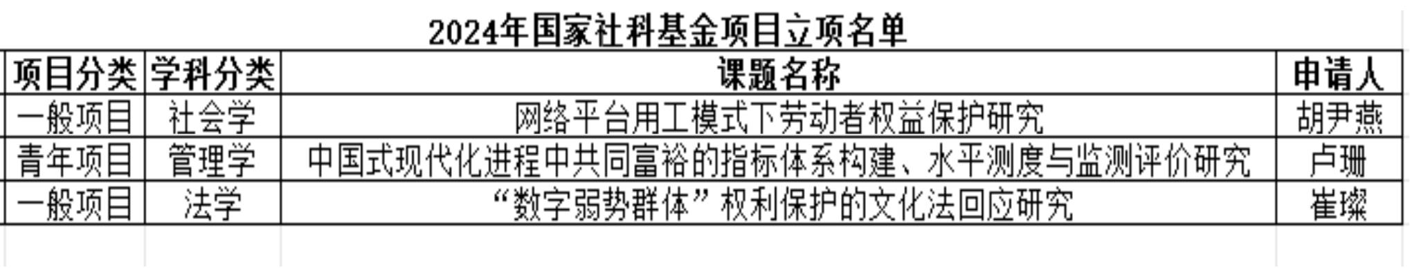 近日,全国哲学社会科学工作办公室公布了2024年国家社会科学基金年度项目立项结果。h视频 共有3个项目获批立项,其中一般项目2项、青年项目1项,具体名单如下: