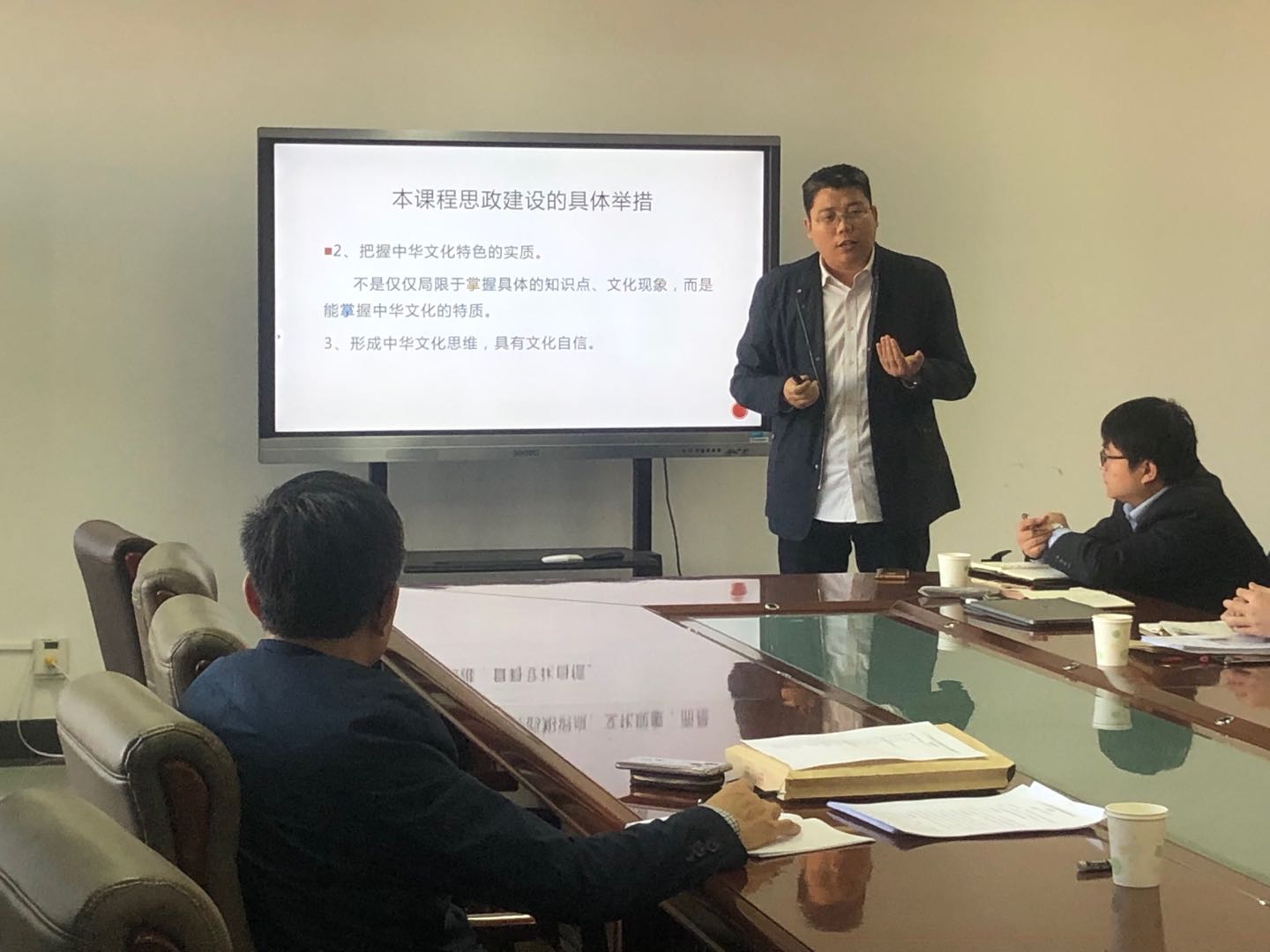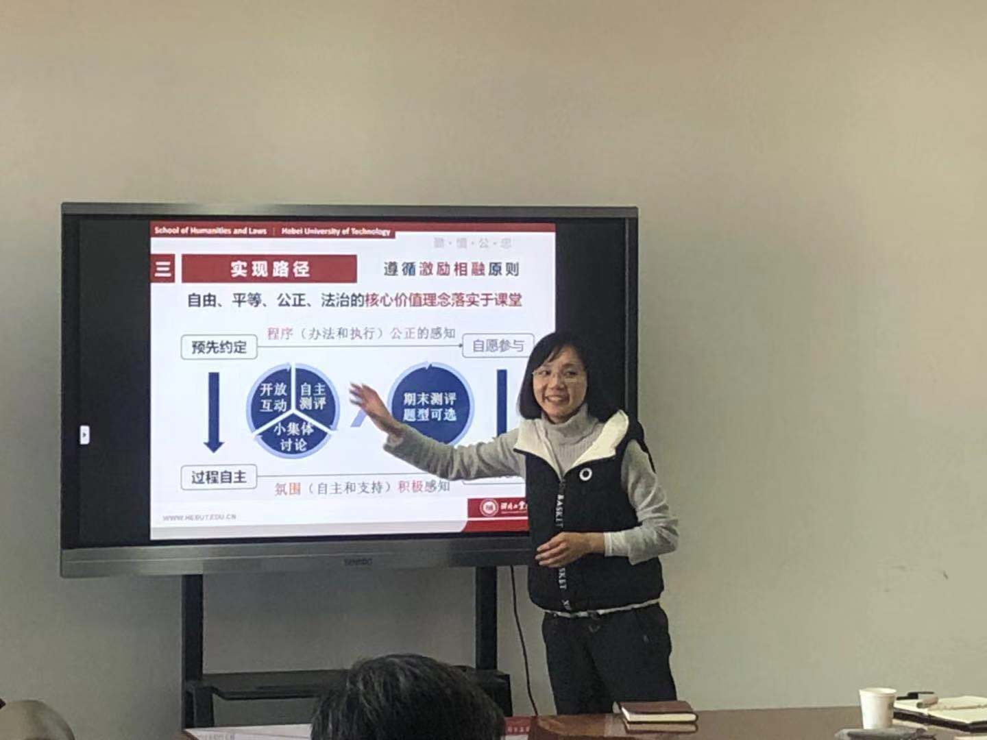 重点负责“课程思政”工作的马立民副院长,就h视频 “课程思政”改革试点工作的具体开展情况做了进一步介绍。自去年暑期以来,学院教师积极响应校党委的号召踊跃申报立项,确定了包括通识课和专业课在内的30个“课程思政”教研项目;2018年11月15日学校“课程思政理论与实践研讨会”在h视频 举行,决定对此30个项目作为校级教研立项进行资助;12月7日,课程思政专家上海大学的顾俊教授来校做报告,并到学院进行专门交流座谈。目前h视频 课程思政建设已形成三个梯队:一是以孙伟龙老师的“大龙说字”和蒋冰晶老师的“法治中国”为代表的线上课程;二是陈晓春、刘新圣、孙伟龙、黄云生、蒋冰晶、闫文博等六位教师承担的示范项目;三是8门重点项目和16门特色项目。对进入梯队的所有项目采取“双自评价”原则,积极落实“进教材、进大纲、进教案、进课堂、进考试”的改革目标,计划在2019年7份组织集中验收,并在12月份结项。其间还将开展案例交流会,探讨挖掘课程思政元素的方法,并尝试进行项目成果转化。