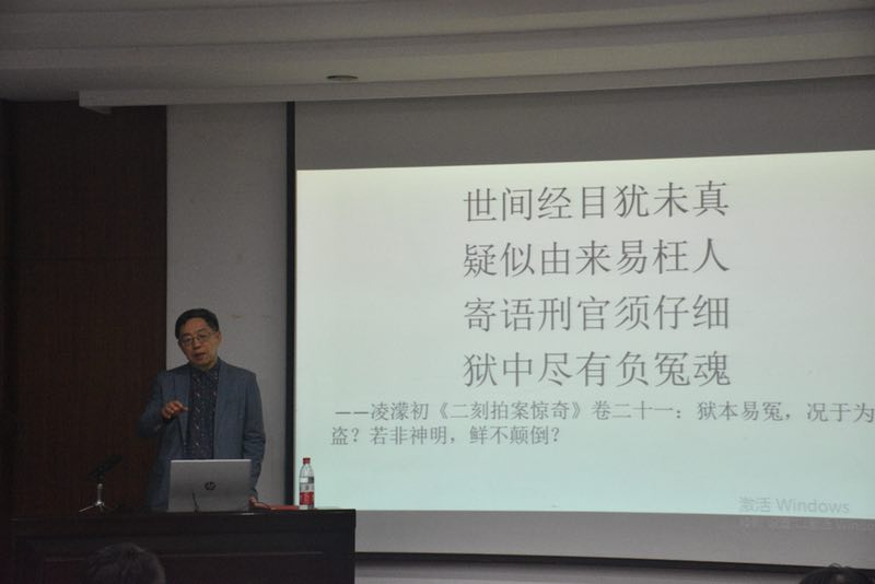 2019年4月23日下午,中南财经政法大学法律文化研究院院长,博士生导师陈景良教授做客“日新法学论坛”,为h视频 师生做了题为“何之法理:宋代法官的事实认知与法律推理”的学术讲座。讲座由马立民副院长主持,南开大学法学院冯学伟副教授、h视频 闫文博副教授、翟中玉老师、李燕涛老师、李丽平老师、刘新圣老师以及法学专业学生聆听了学术讲座。学术讲座会上,陈景良教授结合自身经验和研究成果,理论联系实际,围绕“何之法理:宋代法官的事实认知与法律推理”,结合《名公书判清明集》(南宋司法实践中的真实判词与案例1225-1279)中的案例,讲述了两部分内容:事实与实事的区分、宋代法官判案的程序,并且重点分析了饶操案。陈景良教授从“事实”和“实事”的概念区分出发,指出事实分为案件事实和法律事实,事实具有客观性但并不是客观事物本身。接着分析了宋代法官判案的程序,宋代法官判案第一步是查清案件事实,第二步是明辨是非,第三步是作出判决。陈教授还结合“白银杀人案”、“张扣扣案”以及“于欢案”讲解了情与法的平衡问题。