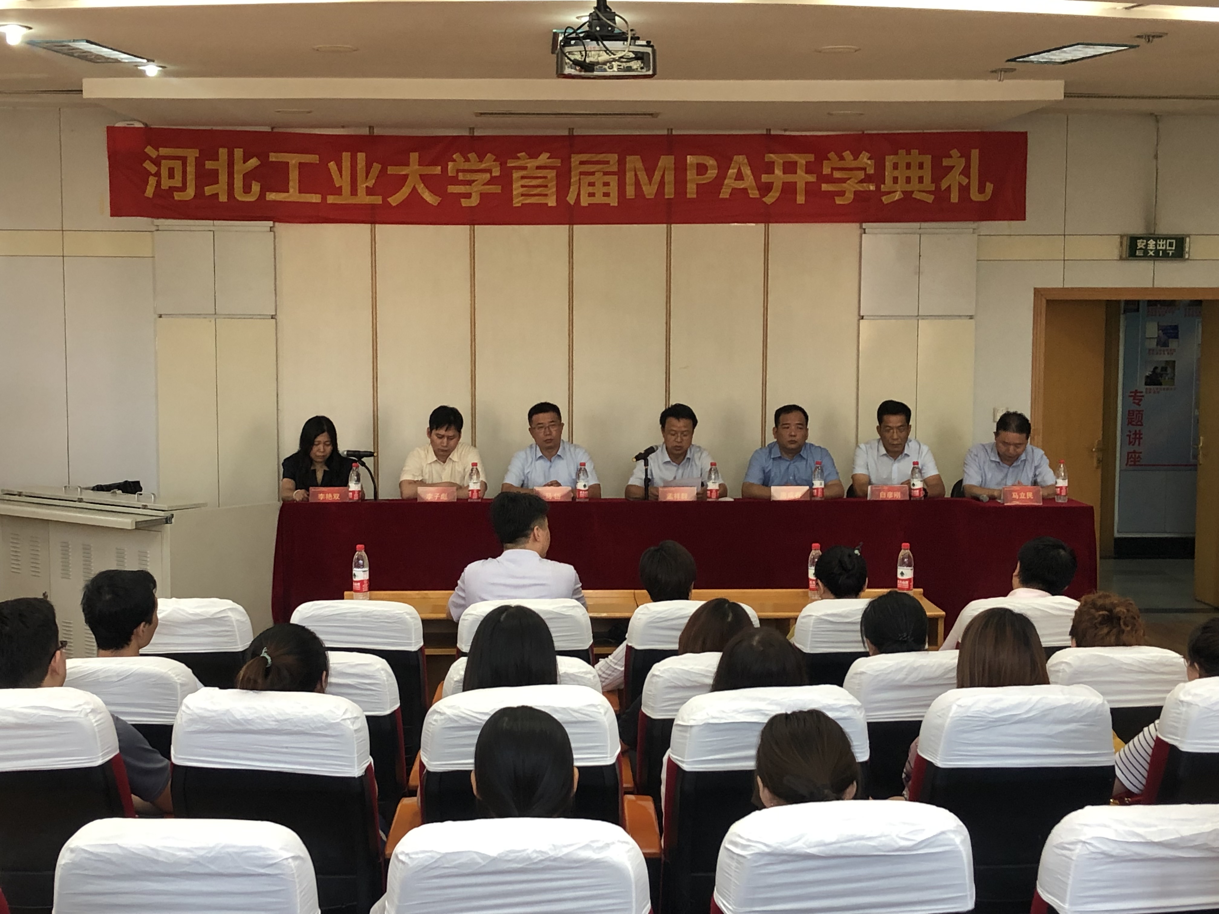 2019年9月1日下午,h视频 首届公共管理硕士(MPA)开学典礼在红桥校区北院专硕中心209会议室隆重举行。校党委常委、纪委书记孟祥群同志、研究生院常务副院长唐成春同志、本科生院常务副院长马岱同志、人力资源处处长李子彪同志、校党委宣传部部长赵庚同志、文法学院党委书记白彦刚同志、文法学院院长李艳双同志、文法学院党委副书记、副院长李彦磊同志以及全体MPA新生、MPA教育中心部分任课教师出席典礼,文法学院副院长马立民同志主持了典礼。我校2017年获批公共管理硕士(MPA)培养单位,此次共招收MPA新生41人,新生主要来自于政法、经济、文教、科技等系统。在典礼上,孟祥群书记代表学校做了重要讲话,热烈欢迎首届MPA同学的到来。他勉励各位新入学的同学:“既然选择了远方,便只顾风雨兼程。”鼓励同学们克服困难,协调好工作和学习二者关系,保证充足的学习时间。他还要求同学们认真学习和研究马克思主义相关理论,尤其是准确把握习近平新时代中国特色社会主义思想中的相关内容,把现实问题和理论思考紧密结合起来。