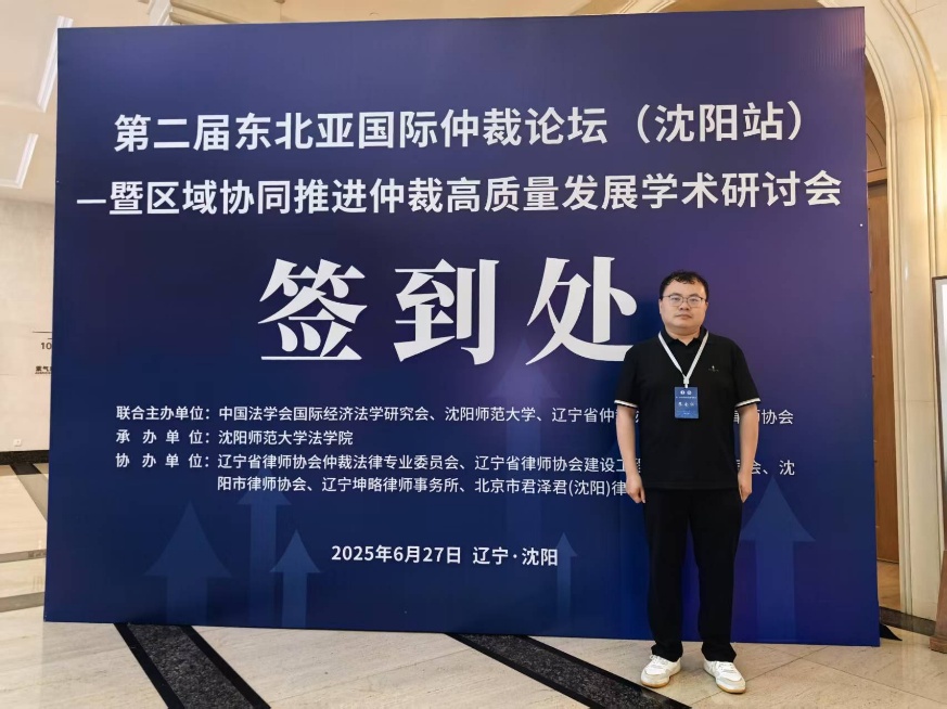 2025年6月27日,h视频 法学系教师李飞参加第二届东北亚国际仲裁论坛(沈阳站)暨区域协同推进仲裁高质量发展学术研讨会。本届论坛由中国法学会国际经济法学研究会、沈阳师范大学、辽宁省仲裁协会、辽宁省律师协会联合主办,沈阳师范大学法学院承办,辽宁省律师协会仲裁法律专业委员会、辽宁省律师协会建设工程法律专业委员会、沈阳市律师协会、辽宁坤略律师事务所、北京市君泽君(沈阳)律师事务所协办。吸引了来自全国各地的仲裁领域精英、资深学者、法律从业者及企业界代表,共同探讨东北亚区域仲裁中心的建设与仲裁协同机制的创新发展路径。会上,李飞老师受聘为辽宁省法学会仲裁法研究会仲裁理论与实务创新专门委员会成员。