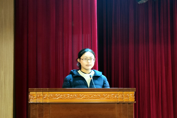 金云迪同学对学校及校友同样表达了感谢。她抒发了自己对写作的热情和对此次比赛主题“思与文”的理解与体会,“以读促写,以写促思”,要用真情去感悟生活,用文字去记录生活。