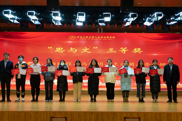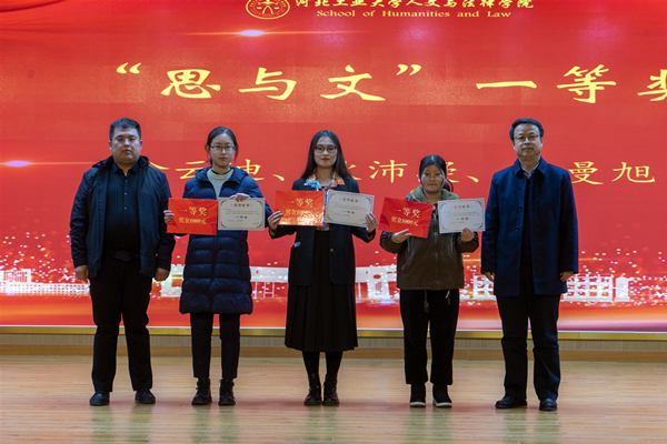 12月17日下午,学院“日新”与“思与文”学术征文比赛颁奖典礼在北辰校区图书馆一楼报告厅隆重举行。校党委常委、纪委书记孟祥群,院党委书记白彦刚,院长李艳双,副书记李彦磊,副院长马立民,2009级校友李欢及部分教师代表参加了此次颁奖大会。会议由学工办主任高雪冬主持。