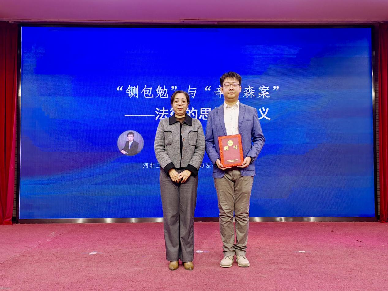 2025年11月4日,h视频 法学系王海龙副教授应h视频 附属红桥中学邀请,为该校师生作“仁和大讲堂”专题讲座,讲座主题为:“铡包勉”与“辛普森案”——法律的思维与正义。