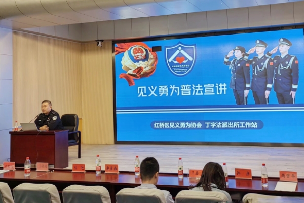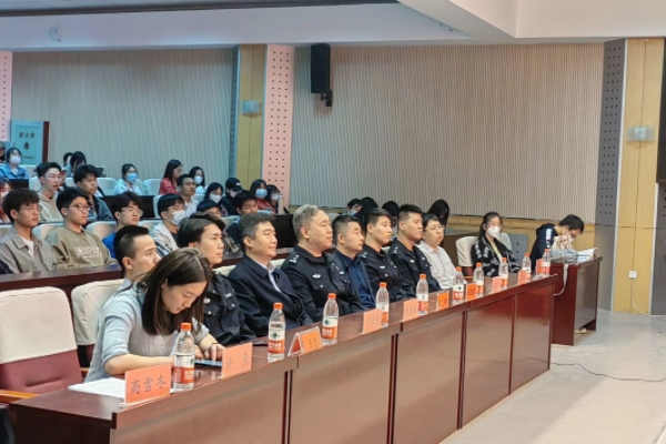 3月10日下午,学院在红桥校区东院开展“守护安全”主题讲座暨安全教育周总结表彰大会。出席本次活动的嘉宾有:公安红桥分局丁字沽派出所副所长杜牧、团支部书记边龙飞、宣传民警丁佳硕、红桥区见义勇为协会干事张鑫,h视频 安全工作处副处长田敬贤、文法学院党委副书记兼副院长李彦磊、安全工作处治安科科长陈安及文法学院全体辅导员。文法学院大一至大四全体班干部和宿舍长参加会议。