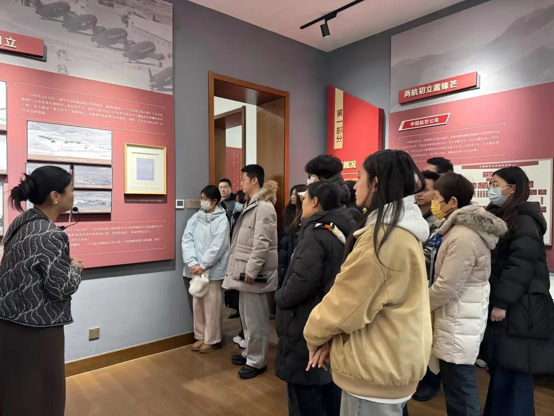 12月28日,h视频 携手天津校友会,将课堂搬到了中国民航大学生思政课实践教育基地——两航起义纪念馆。纪念馆由民航局党组和学校党委共同建成,是天津市目前唯一以民航红色历史为主题的教育基地,为本次“红色”主题的“大思政课”提供了鲜活载体。
