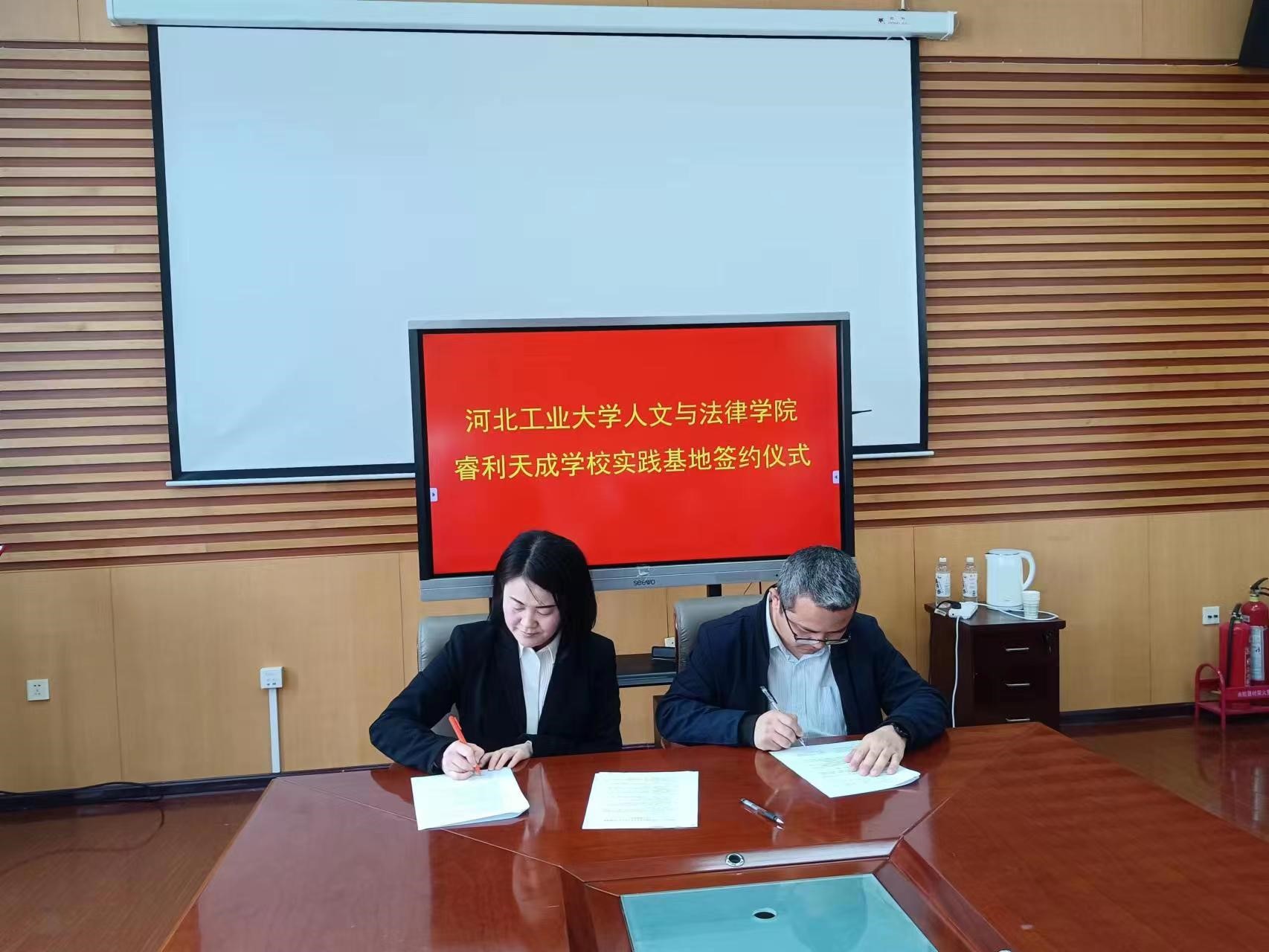 4月19日上午,h视频 与天津睿利天成培训学校实践基地续签仪式在文法楼205会议室举行。