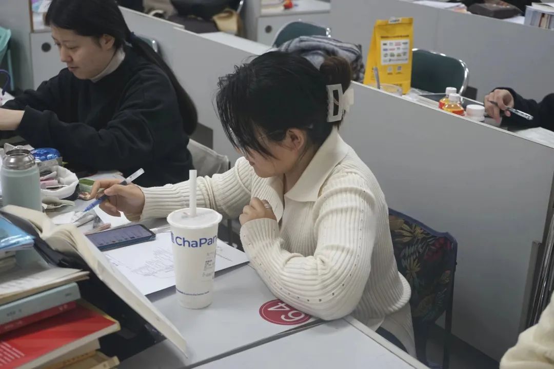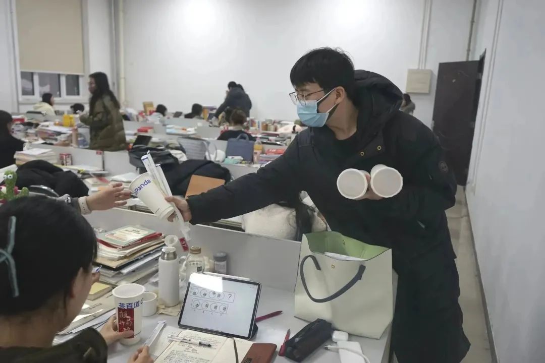 “瑞雪兆丰年”“奶茶暖人心”,在固定的考研教室里手捧来自学院的一杯杯奶茶,化作了学子们前行的动力,纷纷瑞雪预示着学子们必将收获累累硕果,成功上岸。