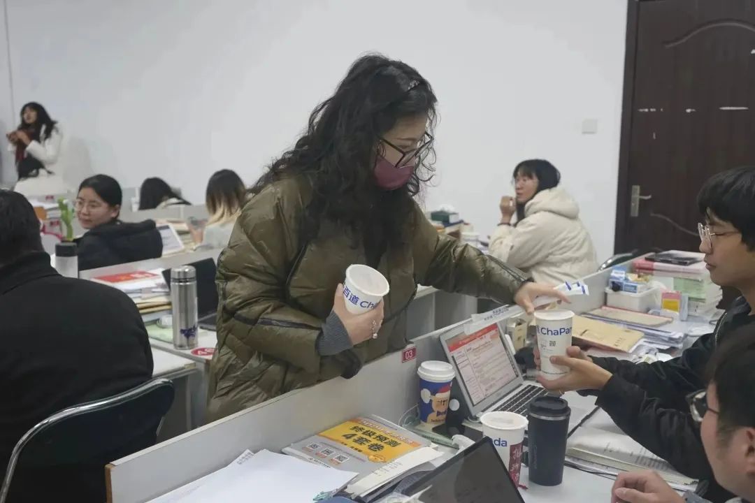 “考研学海苦相随,一杯香醇慰凡心”,仲冬始,雪纷飞,多日来考研学子在学院楼各个角落里努力背书,往来的老师不仅是看在眼里,更是记在了心里,学生们认真复习的身影始终让老师们牵挂于心。趁着初雪严寒之时,学院给学生送上一杯热腾腾的奶茶,“奶茶虽小,关怀备至”,一杯奶茶寄托着老师们最真诚的鼓励和最殷切的祝福,凝聚着对大家考研上岸的衷心祝愿,期望他们于实践中收获成长,于辛苦中尝到甘甜,最终都能成功地实现读研梦!